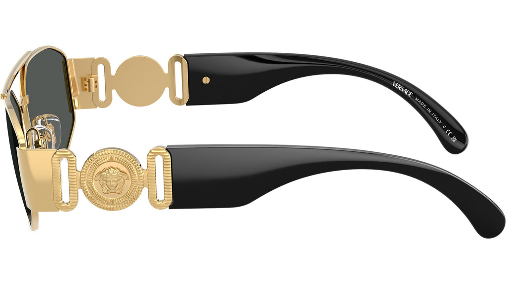 Occhiali da sole Versace uomo modello VE2287 100287 con montatura geometrica in metallo oro e lenti base 4 in policarbonato grigio scuro. Naselli regolabili. Linea: Iconic. Codice Brand: 0VE2287. Codice colore: 100287. Rivenditore autorizzato online Versace Eyewear. Ogni prodotto Versace viene consegnato con astuccio originale e accessori ed è coperto da garanzia del produttore di 12 mesi.