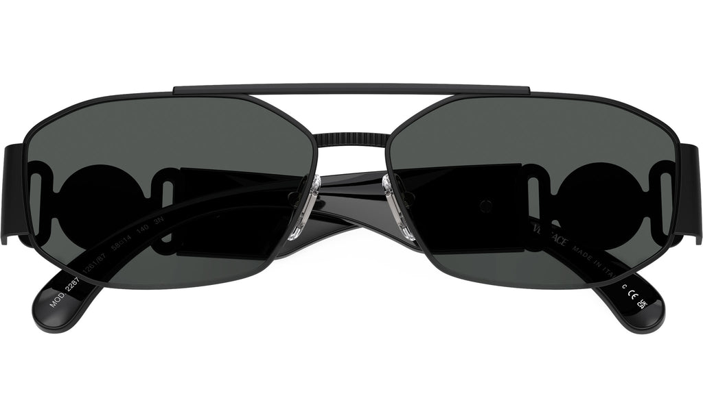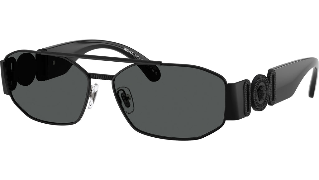 Occhiali da sole Versace uomo modello VE2287 126187 con montatura geometrica in metallo nero opaco e lenti base 4 in policarbonato grigio scuro. Naselli regolabili. Linea: Iconic. Codice Brand: 0VE2287. Codice colore: 126187. Rivenditore autorizzato online Versace Eyewear. Ogni prodotto Versace viene consegnato con astuccio originale e accessori ed è coperto da garanzia del produttore di 12 mesi.
