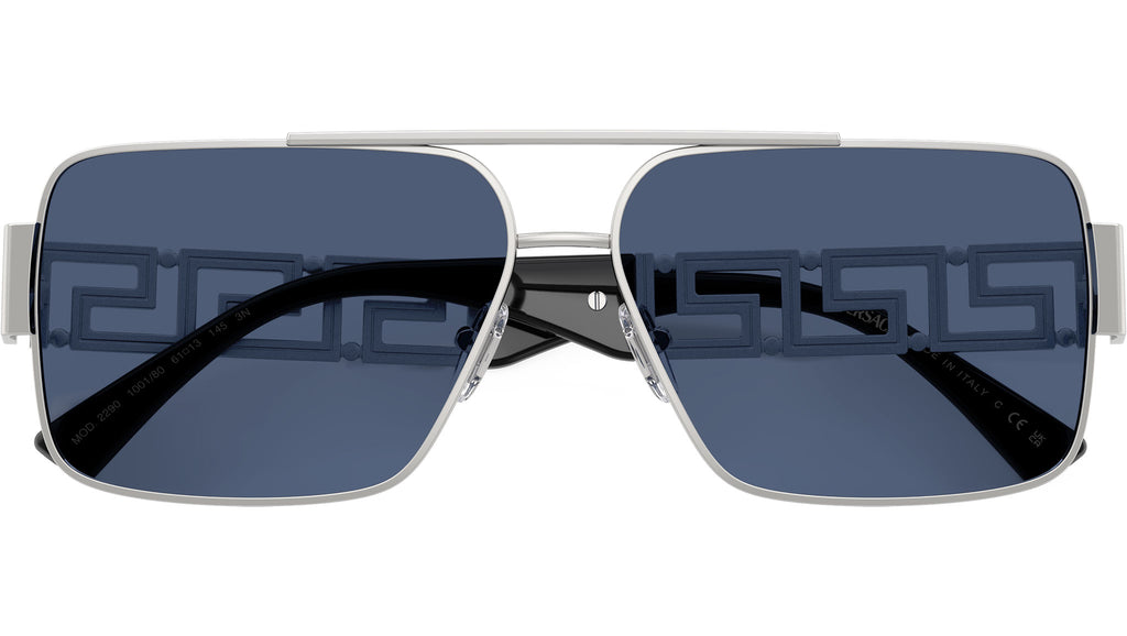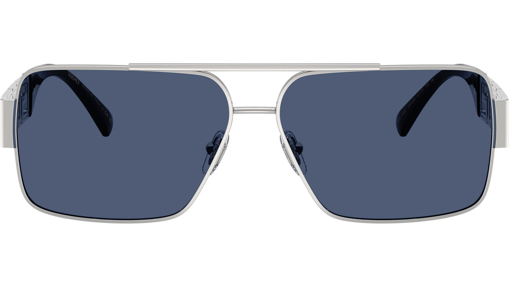 Occhiali da sole Versace uomo modello VE2290 100180 con montatura rettangolare in metallo argento e lenti base 2 in policarbonato blu scuro. Naselli regolabili. Linea: Iconic. Codice Brand: 0VE2290. Codice colore: 100180. Rivenditore autorizzato online Versace Eyewear. Ogni prodotto Versace viene consegnato con astuccio originale e accessori ed è coperto da garanzia del produttore di 12 mesi.