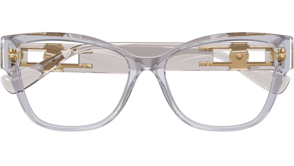 Montatura per occhiali da vista Versace donna modello VE3347 5305 con montatura d-frame in acetato grigio chiaro trasparente e lenti demo base 4. Vestibilità a ponte alto. Linea: Iconic. Codice Brand: 0VE3347. Codice colore: 5305. Rivenditore autorizzato online Versace Eyewear. Ogni prodotto Versace viene consegnato con astuccio originale e accessori ed è coperto da garanzia del produttore di 12 mesi.