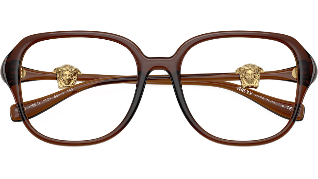 Montatura per occhiali da vista Versace donna modello VE3386D 5534 con montatura squadrata in iniettato marrone trasparente e lenti demo base 4. Vestibilità a ponte basso. Linea: Daily Heritage. Codice Brand: 0VE3386D. Codice colore: 5534. Rivenditore autorizzato online Versace Eyewear. Ogni prodotto Versace viene consegnato con astuccio originale e accessori ed è coperto da garanzia del produttore di 12 mesi.