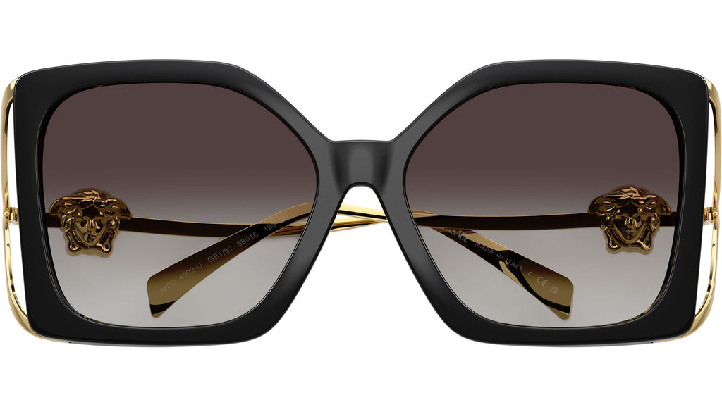 Occhiali da sole Versace donna modello VE4502U GB1/87 con montatura squadrata in iniettato nero e lenti base 4 in policarbonato grigio chiaro sfumato nero. Fit universale. Linea: Fashion Id. Codice Brand: 0VE4502U. Codice colore: GB1/87. Rivenditore autorizzato online Versace Eyewear. Ogni prodotto Versace viene consegnato con astuccio originale e accessori ed è coperto da garanzia del produttore di 12 mesi.