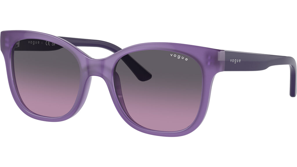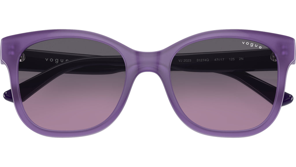 Occhiali da sole Vogue bambina modello VJ2023 31274Q con montatura a farfalla in nylon viola opalino e lenti base 4 in bio poliammide viola sfumato grigio. Vestibilità a ponte alto. Linea: Kids. Codice Brand: 0VJ2023. Codice colore: 31274Q. Rivenditore autorizzato online Vogue Kids. Ogni prodotto Vogue viene consegnato con astuccio originale e accessori ed è coperto da garanzia del produttore di 12 mesi.