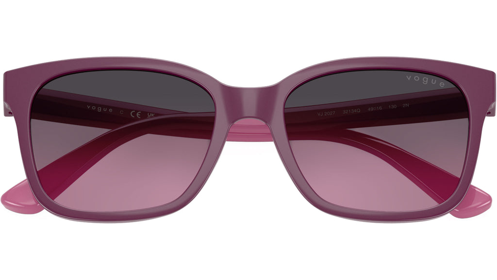 Occhiali da sole Vogue bambino modello VJ2027 32134Q con montatura rettangolare in nylon viola solido e lenti base 4 in bio poliammide viola sfumato grigio. Vestibilità a ponte alto. Linea: Kids. Codice Brand: 0VJ2027. Codice colore: 32134Q. Rivenditore autorizzato online Vogue Kids. Ogni prodotto Vogue viene consegnato con astuccio originale e accessori ed è coperto da garanzia del produttore di 12 mesi.