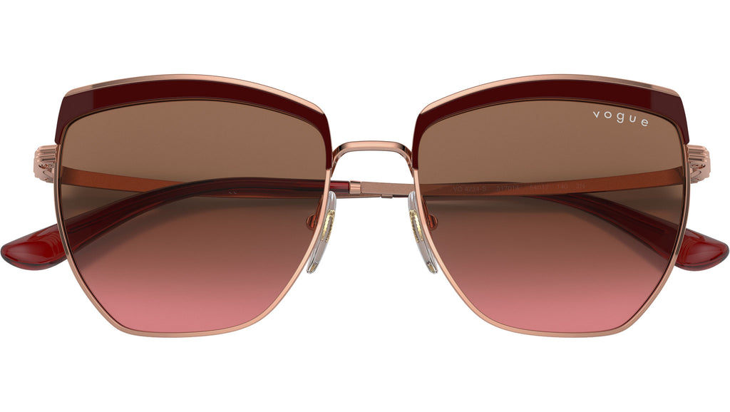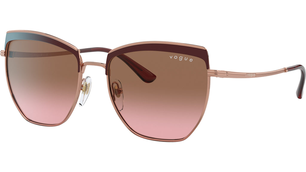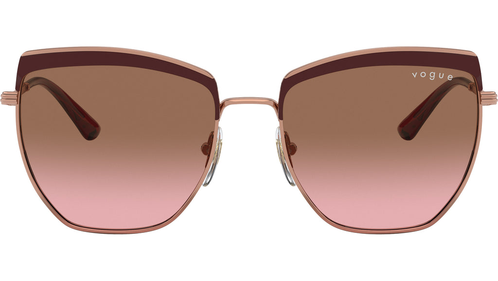 Occhiali da sole Vogue donna modello VO4234S 517014 con montatura geometrica in metallo borgogna e lenti base 6 in policarbonato rosa sfumato marrone. Naselli regolabili. Linea: In Vogue. Codice Brand: 0VO4234S. Codice colore: 517014. Rivenditore autorizzato online Vogue Eyewear. Ogni prodotto Vogue viene consegnato con astuccio originale e accessori ed è coperto da garanzia del produttore di 12 mesi.