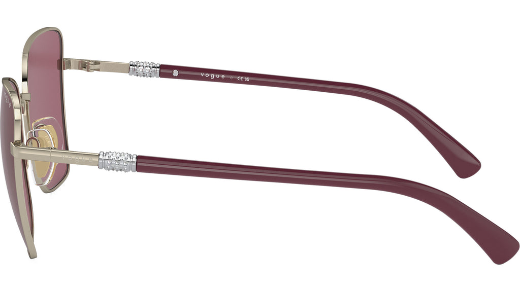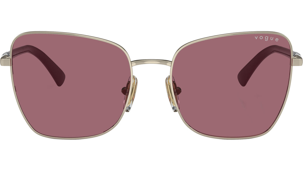 Occhiali da sole Vogue donna modello VO4277SB 848/1A con montatura a farfalla in metallo oro chiaro e lenti base 6 in CR-39 viola. Naselli regolabili. Linea: Evergreen. Codice Brand: 0VO4277SB. Codice colore: 848/1A. Rivenditore autorizzato online Vogue Eyewear. Ogni prodotto Vogue viene consegnato con astuccio originale e accessori ed è coperto da garanzia del produttore di 12 mesi.
