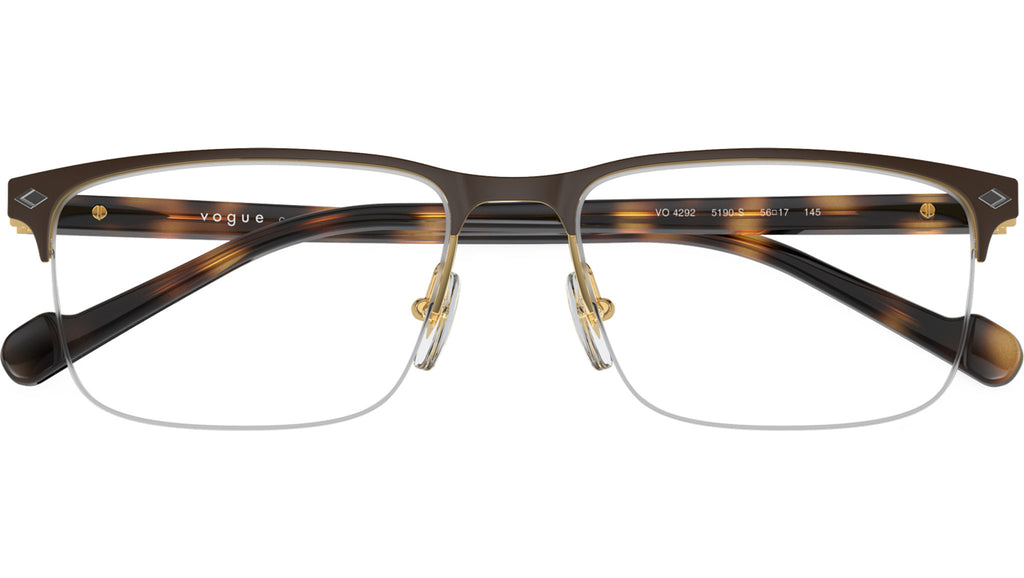 Montatura per occhiali da vista Vogue uomo modello VO4292 5190S con montatura rettangolare in metallo marrone opaco e lenti demo base 4. Naselli regolabili. Linea: Man. Codice Brand: 0VO4292. Codice colore: 5190S. Rivenditore autorizzato online Vogue Eyewear. Ogni prodotto Vogue viene consegnato con astuccio originale e accessori ed è coperto da garanzia del produttore di 12 mesi.