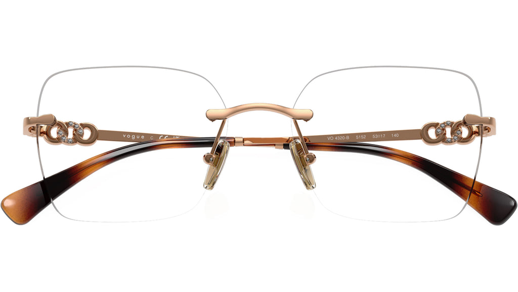 Montatura per occhiali da vista Vogue donna modello VO4320B 5152 con montatura squadrata in metallo oro rosa e lenti demo base 4. Naselli regolabili. Linea: Evergreen. Codice Brand: 0VO4320B. Codice colore: 5152. Rivenditore autorizzato online Vogue Eyewear. Ogni prodotto Vogue viene consegnato con astuccio originale e accessori ed è coperto da garanzia del produttore di 12 mesi.