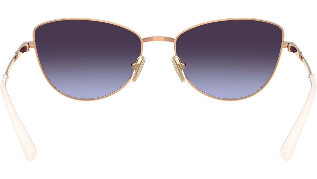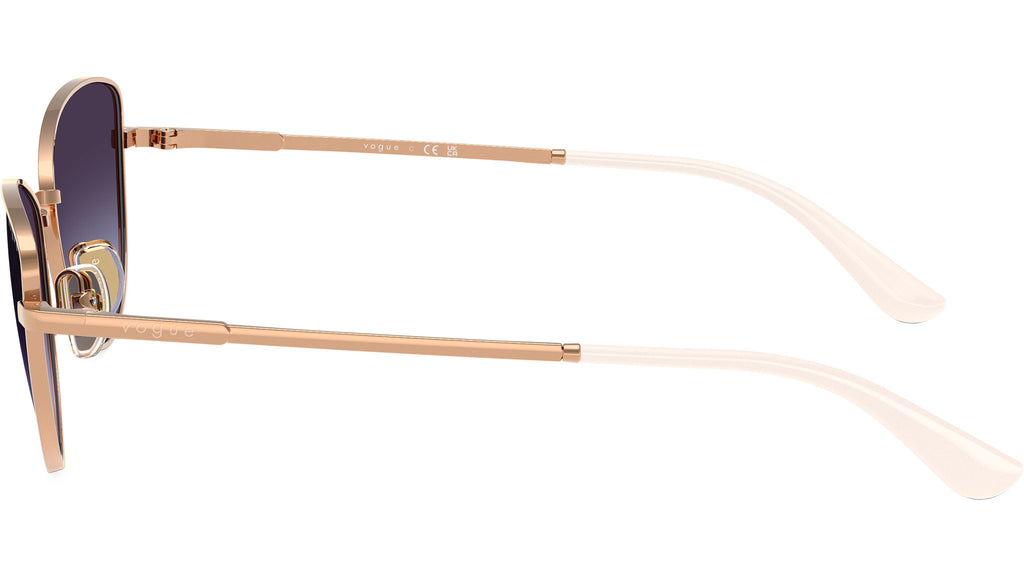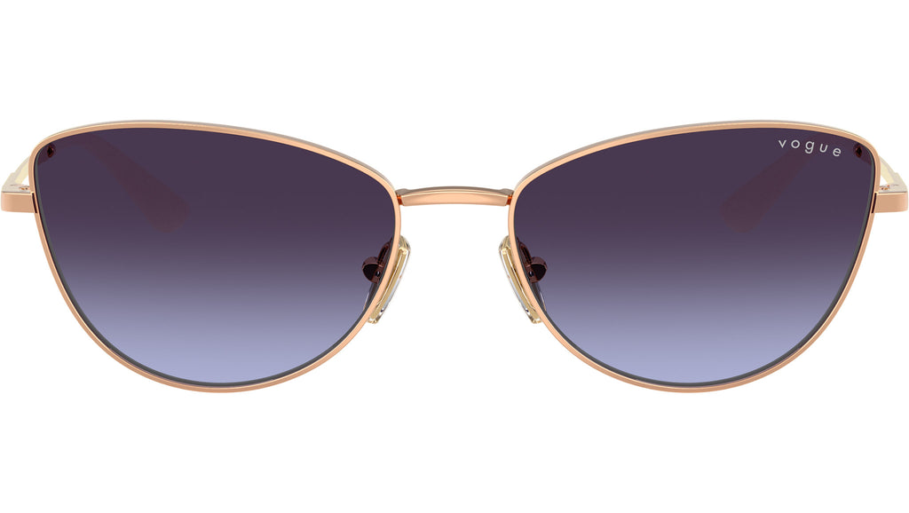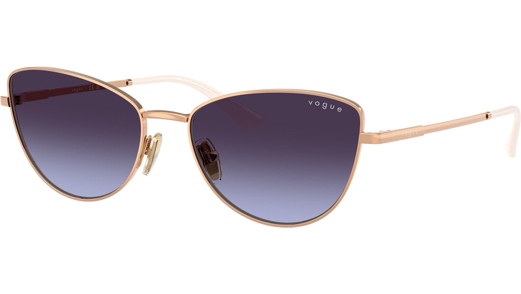 Occhiali da sole Vogue donna modello VO4324S 51524Q con montatura a farfalla in metallo oro rosa e lenti base 4 in policarbonato viola sfumato grigio. Naselli regolabili. Linea: In Vogue. Codice Brand: 0VO4324S. Codice colore: 51524Q. Rivenditore autorizzato online Vogue Eyewear. Ogni prodotto Vogue viene consegnato con astuccio originale e accessori ed è coperto da garanzia del produttore di 12 mesi.