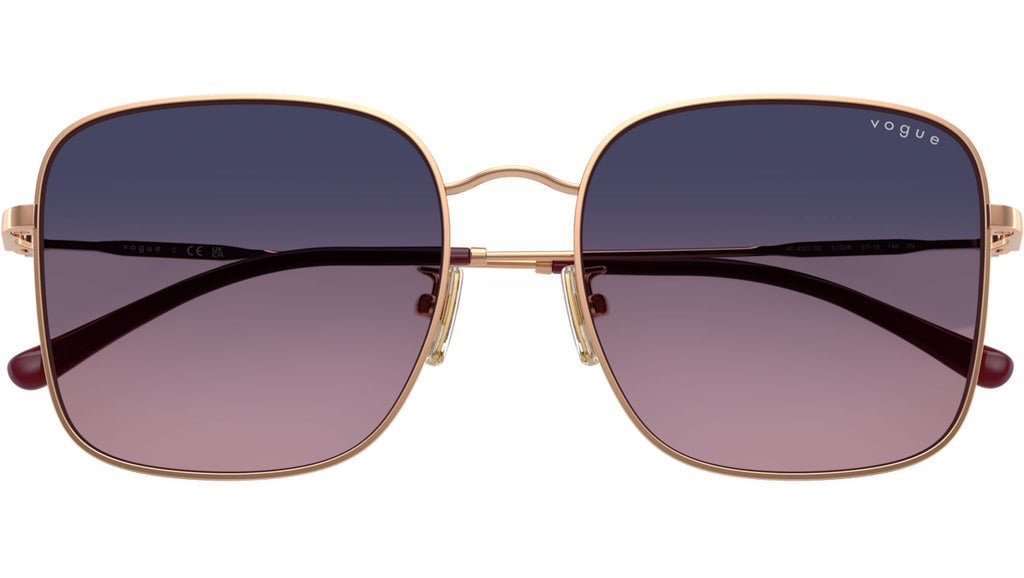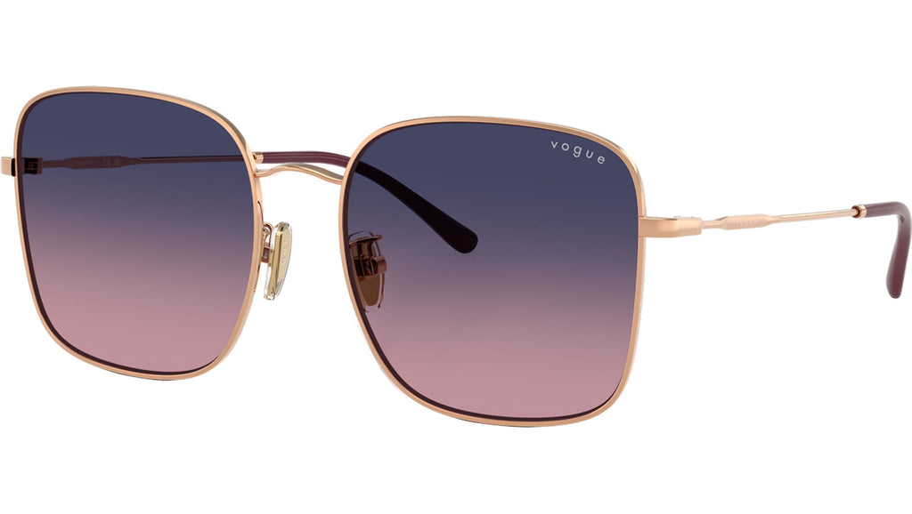 Occhiali da sole Vogue donna modello VO4327SD 5152I6 con montatura squadrata in metallo oro rosa e lenti base 2 in policarbonato rosa sfumato blu. Vestibilità a ponte basso. Linea: In Vogue. Codice Brand: 0VO4327SD. Codice colore: 5152I6. Rivenditore autorizzato online Vogue Eyewear. Ogni prodotto Vogue viene consegnato con astuccio originale e accessori ed è coperto da garanzia del produttore di 12 mesi.