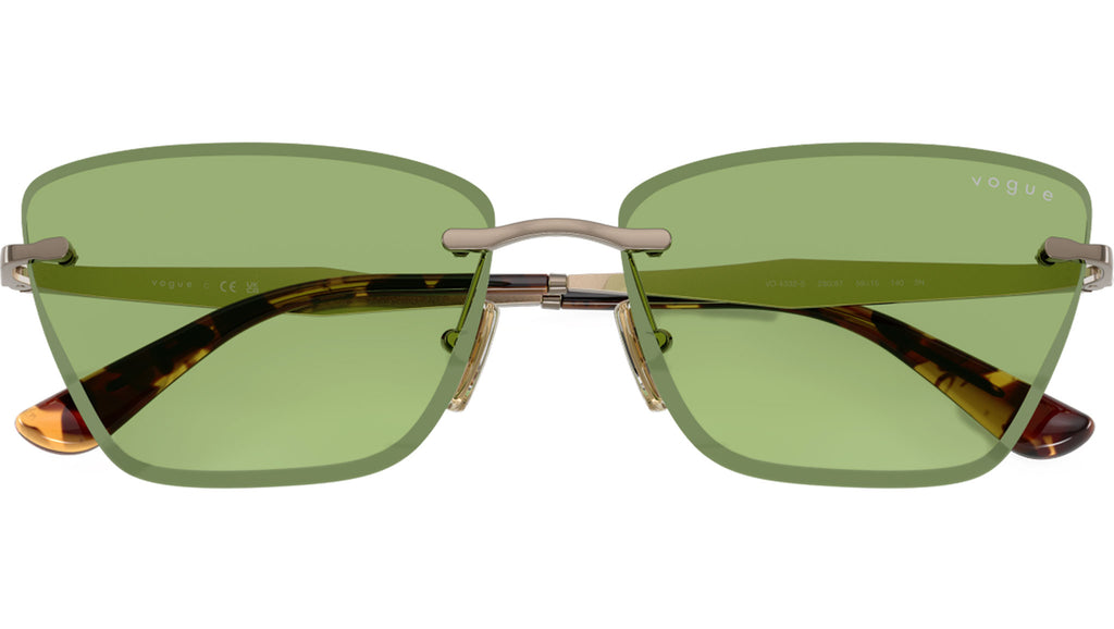 Occhiali da sole Vogue donna modello VO4332S 5138/2 con montatura cat eye in metallo marrone chiaro e lenti base 4 in bio poliammide verde. Naselli regolabili. Linea: In Vogue. Codice Brand: 0VO4332S. Codice colore: 5138/2. Rivenditore autorizzato online Vogue Eyewear. Ogni prodotto Vogue viene consegnato con astuccio originale e accessori ed è coperto da garanzia del produttore di 12 mesi.