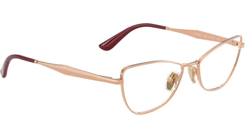 Montatura per occhiali da vista Vogue donna modello VO4333 5152 con montatura a farfalla in metallo oro rosa e lenti demo base 4. Naselli regolabili. Linea: In Vogue. Codice Brand: 0VO4333. Codice colore: 5152. Rivenditore autorizzato online Vogue Eyewear. Ogni prodotto Vogue viene consegnato con astuccio originale e accessori ed è coperto da garanzia del produttore di 12 mesi.