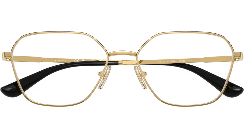 Montatura per occhiali da vista Vogue donna modello VO4334 5210 con montatura geometrica in metallo oro e lenti demo base 4. Naselli regolabili. Linea: In Vogue. Codice Brand: 0VO4334. Codice colore: 5210. Rivenditore autorizzato online Vogue Eyewear. Ogni prodotto Vogue viene consegnato con astuccio originale e accessori ed è coperto da garanzia del produttore di 12 mesi.