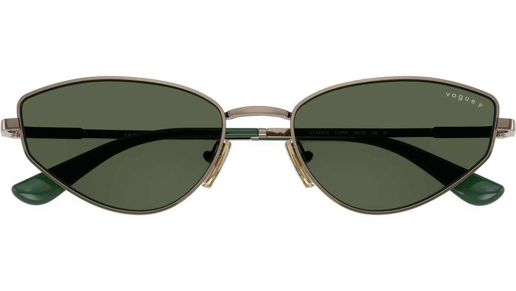 Occhiali da sole Vogue donna modello VO4339S 51389A con montatura cat eye in metallo marrone chiaro e lenti base 4 in policarbonato verde scuro polarizzato. Naselli regolabili. Linea: In Vogue. Codice Brand: 0VO4339S. Codice colore: 51389A. Rivenditore autorizzato online Vogue Eyewear. Ogni prodotto Vogue viene consegnato con astuccio originale e accessori ed è coperto da garanzia del produttore di 12 mesi.