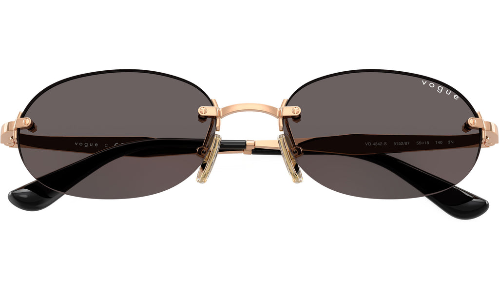 Occhiali da sole Vogue donna modello VO4342S 515287 con montatura ovale in metallo oro rosa e lenti base 4 in bio poliammide nero fumo. Naselli regolabili. Linea: Evergreen. Codice Brand: 0VO4342S. Codice colore: 515287. Rivenditore autorizzato online Vogue Eyewear. Ogni prodotto Vogue viene consegnato con astuccio originale e accessori ed è coperto da garanzia del produttore di 12 mesi.