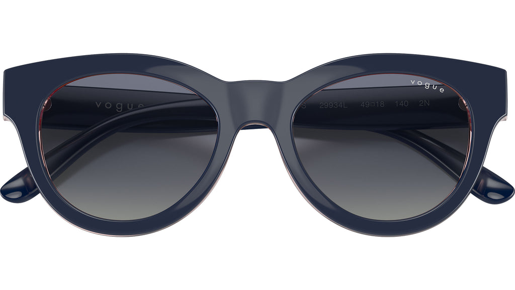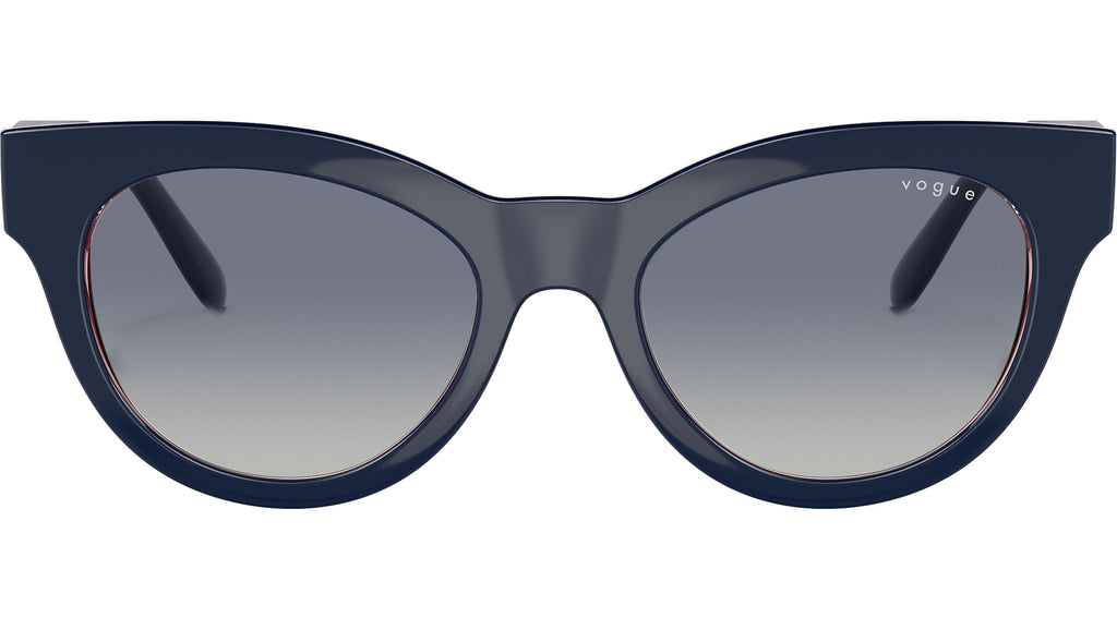 Occhiali da sole Vogue donna modello VO5429S 29934L con montatura ovale in iniettato blu scuro e lenti base 6 in policarbonato grigio sfumato blu scuro. Vestibilità a ponte alto. Linea: In Vogue. Codice Brand: 0VO5429S. Codice colore: 29934L. Rivenditore autorizzato online Vogue Eyewear. Ogni prodotto Vogue viene consegnato con astuccio originale e accessori ed è coperto da garanzia del produttore di 12 mesi.