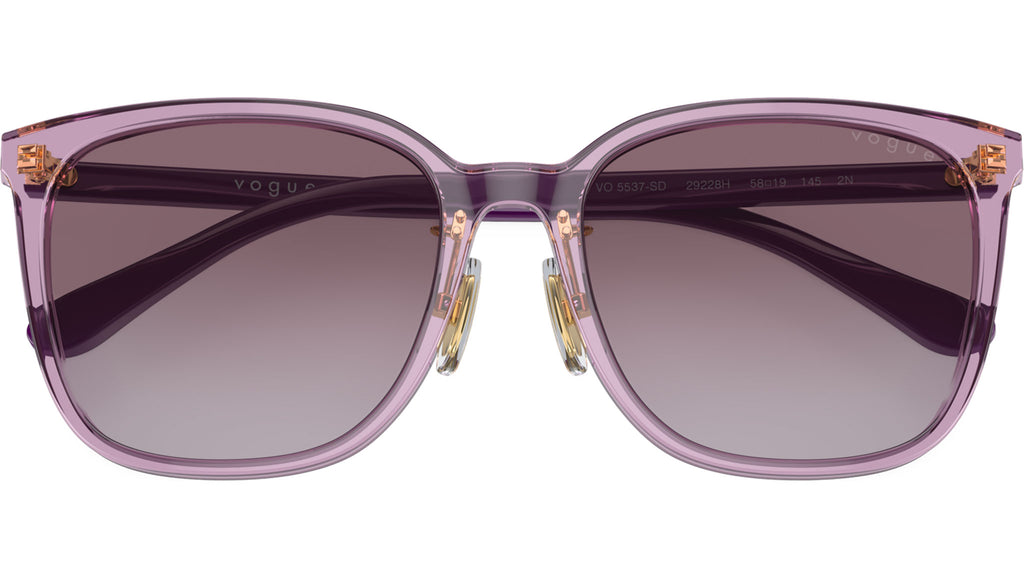 Occhiali da sole Vogue donna modello VO5537SD 29228H con montatura squadrata in acetato violet trasparente e lenti base 4 in CR-39 sfumato viola. Vestibilità a ponte basso. Linea: In Vogue. Codice Brand: 0VO5537SD. Codice colore: 29228H. Rivenditore autorizzato online Vogue Eyewear. Ogni prodotto Vogue viene consegnato con astuccio originale e accessori ed è coperto da garanzia del produttore di 12 mesi.