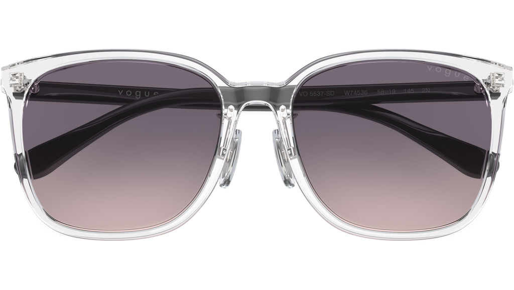 Occhiali da sole Vogue donna modello VO5537SD W74536 con montatura squadrata in acetato trasparente e lenti base 4 in CR-39 rosa sfumato viola scuro. Vestibilità a ponte basso. Linea: In Vogue. Codice Brand: 0VO5537SD. Codice colore: W74536. Rivenditore autorizzato online Vogue Eyewear. Ogni prodotto Vogue viene consegnato con astuccio originale e accessori ed è coperto da garanzia del produttore di 12 mesi.