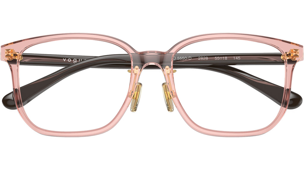 Montatura per occhiali da vista Vogue donna modello VO5550D 2828 con montatura d-frame in acetato pink trasparente e lenti demo base 4. Vestibilità a ponte basso. Linea: In Vogue. Codice Brand: 0VO5550D. Codice colore: 2828. Rivenditore autorizzato online Vogue Eyewear. Ogni prodotto Vogue viene consegnato con astuccio originale e accessori ed è coperto da garanzia del produttore di 12 mesi.