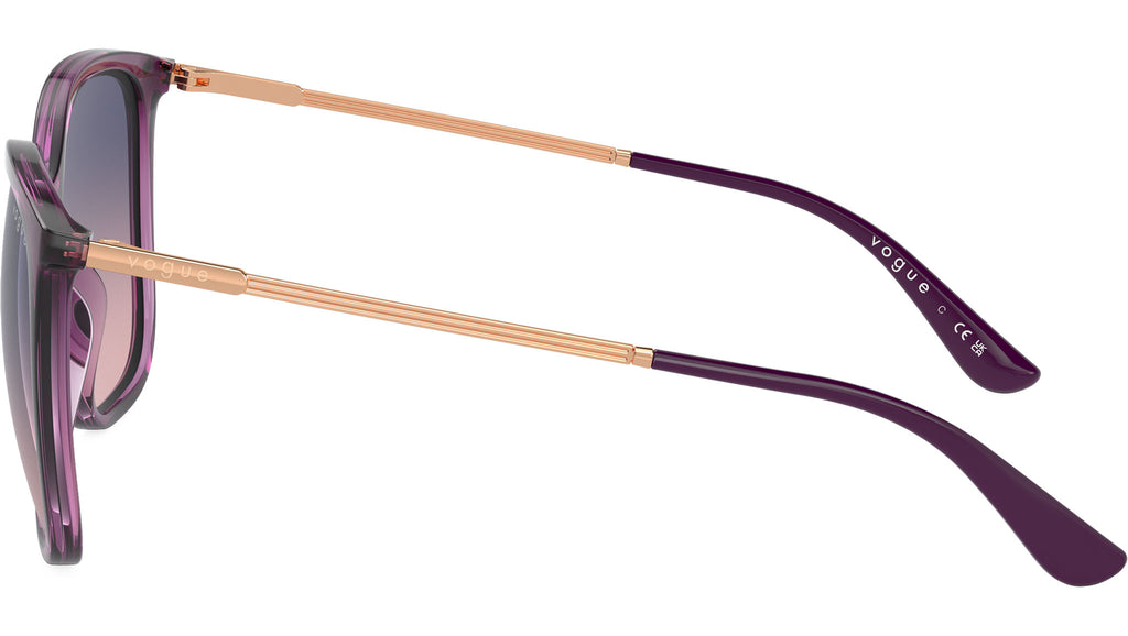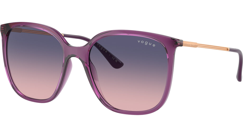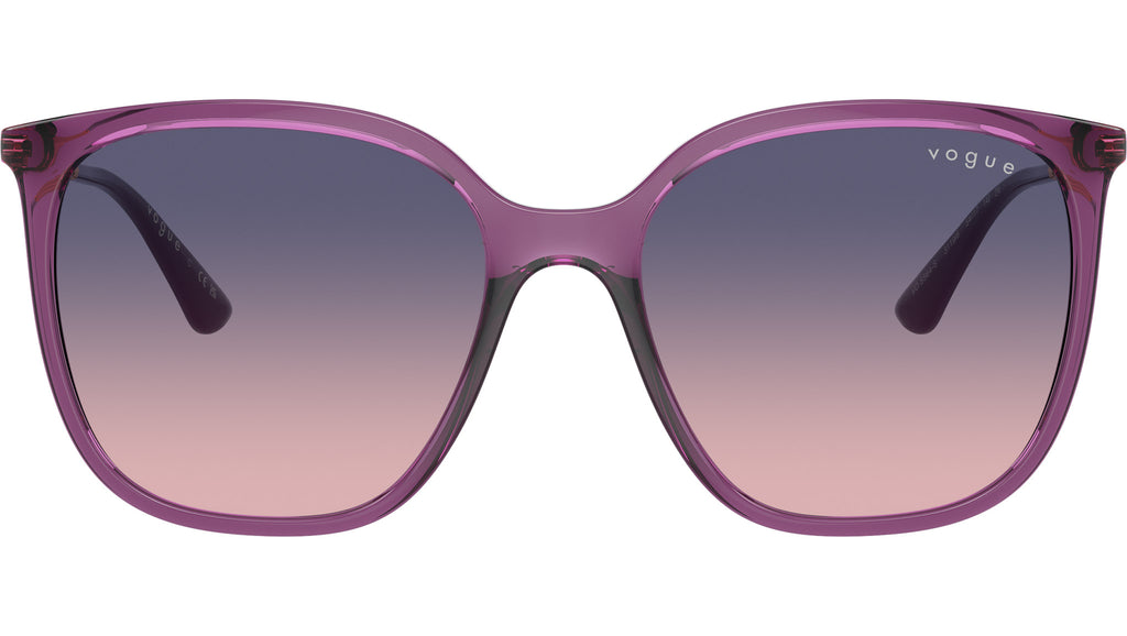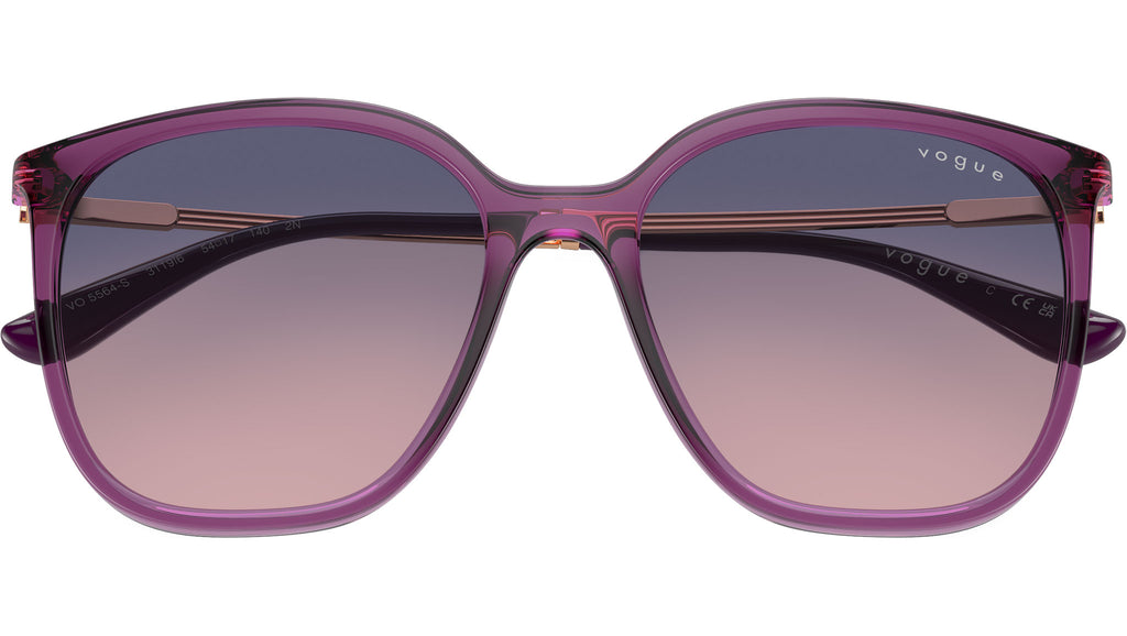 Occhiali da sole Vogue donna modello VO5564S 3119I6 con montatura squadrata in nylon violet trasparente e lenti base 6 in policarbonato rosa sfumato blu. Vestibilità a ponte alto. Linea: In Vogue. Codice Brand: 0VO5564S. Codice colore: 3119I6. Rivenditore autorizzato online Vogue Eyewear. Ogni prodotto Vogue viene consegnato con astuccio originale e accessori ed è coperto da garanzia del produttore di 12 mesi.