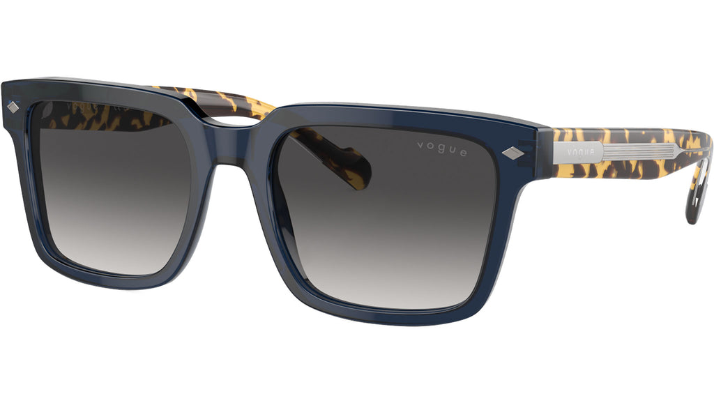 Occhiali da sole Vogue uomo modello VO5573S 31438G con montatura d-frame in acetato blu trasparente e lenti base 4 in CR-39 grigio sfumato nero. Vestibilità a ponte alto. Linea: Man. Codice Brand: 0VO5573S. Codice colore: 31438G. Rivenditore autorizzato online Vogue Eyewear. Ogni prodotto Vogue viene consegnato con astuccio originale e accessori ed è coperto da garanzia del produttore di 12 mesi.