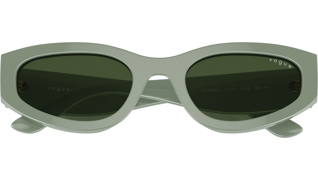 Occhiali da sole Vogue donna modello VO5585S 316171 con montatura geometrica in acetato verde chiaro solido e lenti base 2 in CR-39 verde scuro. Vestibilità a ponte alto. Linea: Forerunner. Codice Brand: 0VO5585S. Codice colore: 316171. Rivenditore autorizzato online Vogue Eyewear. Ogni prodotto Vogue viene consegnato con astuccio originale e accessori ed è coperto da garanzia del produttore di 12 mesi.