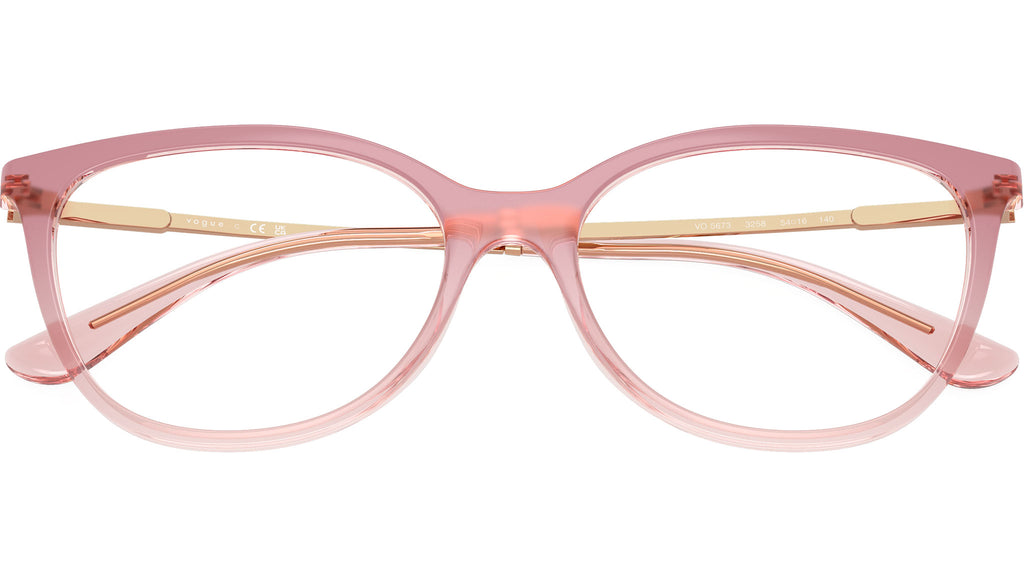 Montatura per occhiali da vista Vogue donna modello VO5673 3258 con montatura ovale in nylon rosa sfumato e lenti demo base 4. Vestibilità a ponte alto. Linea: In Vogue. Codice Brand: 0VO5673. Codice colore: 3258. Rivenditore autorizzato online Vogue Eyewear. Ogni prodotto Vogue viene consegnato con astuccio originale e accessori ed è coperto da garanzia del produttore di 12 mesi.