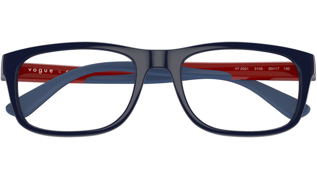 Montatura per occhiali da vista Vogue bambino modello VY2021 3105 con montatura rettangolare in nylon blu scuro solido e lenti demo base 4. Vestibilità a ponte alto. Linea: Kids. Codice Brand: 0VY2021. Codice colore: 3105. Rivenditore autorizzato online Vogue Eyewear. Ogni prodotto Vogue viene consegnato con astuccio originale e accessori ed è coperto da garanzia del produttore di 12 mesi.