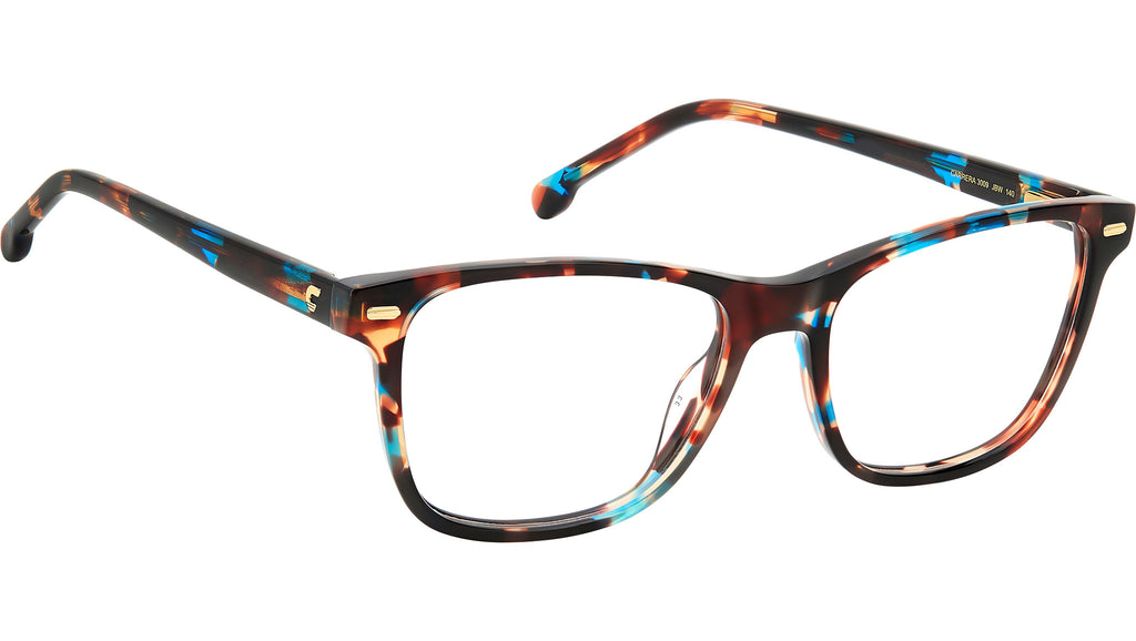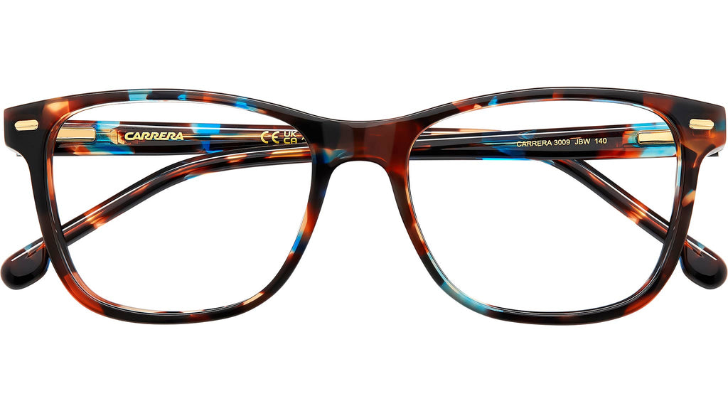 Occhiali da vista Carrera 3009 JBW donna con montatura rettangolare in acetato blu avana e lenti demo. Carrera rilegge i propri codici stilistici in una chiave inedita, fresca e seducente. Sono occhiali da vista caratterizzati dalla montatura in acetato, iconica grazie al rivetto metallico sul frontale e alla “C” laserata sulle aste. Il modello si indossa con piacere grazie alle cerniere flessibili. È proposto nelle tonalità classiche e aggiunge una dose extra di fascino nelle versioni trasparenti e in tonalità pastello. Linea: Signature. Codice modello: 107349. Codice colore: JBW. Rivenditore autorizzato Carrera online. Gli occhiali vengono consegnati con custodia e accessori originali e sono coperti dalla garanzia ufficiale di 12 mesi del produttore.