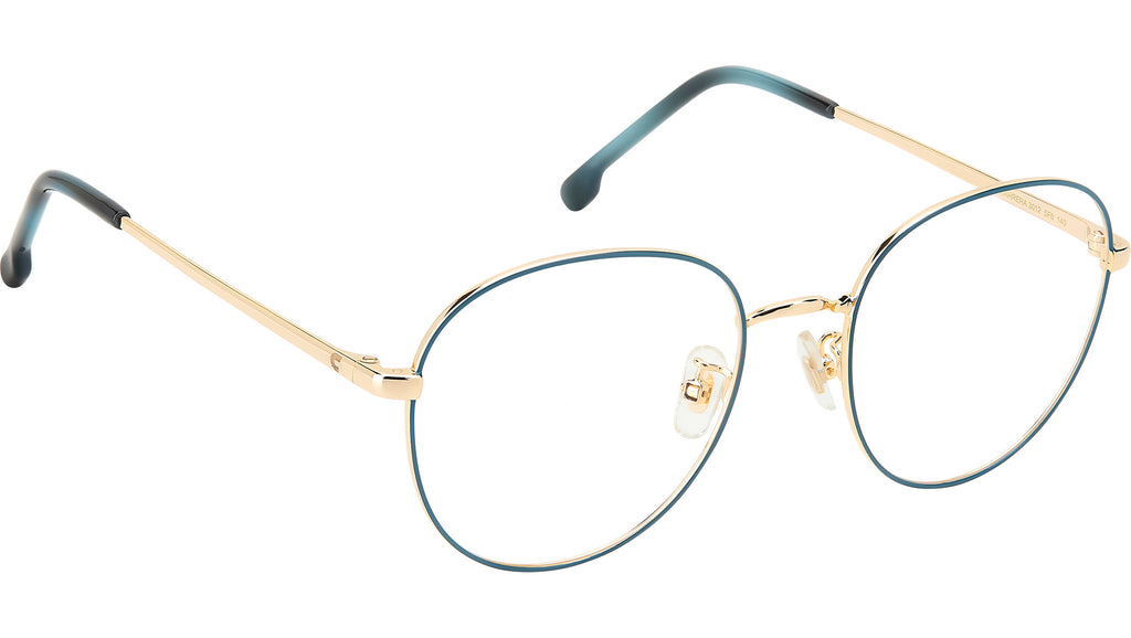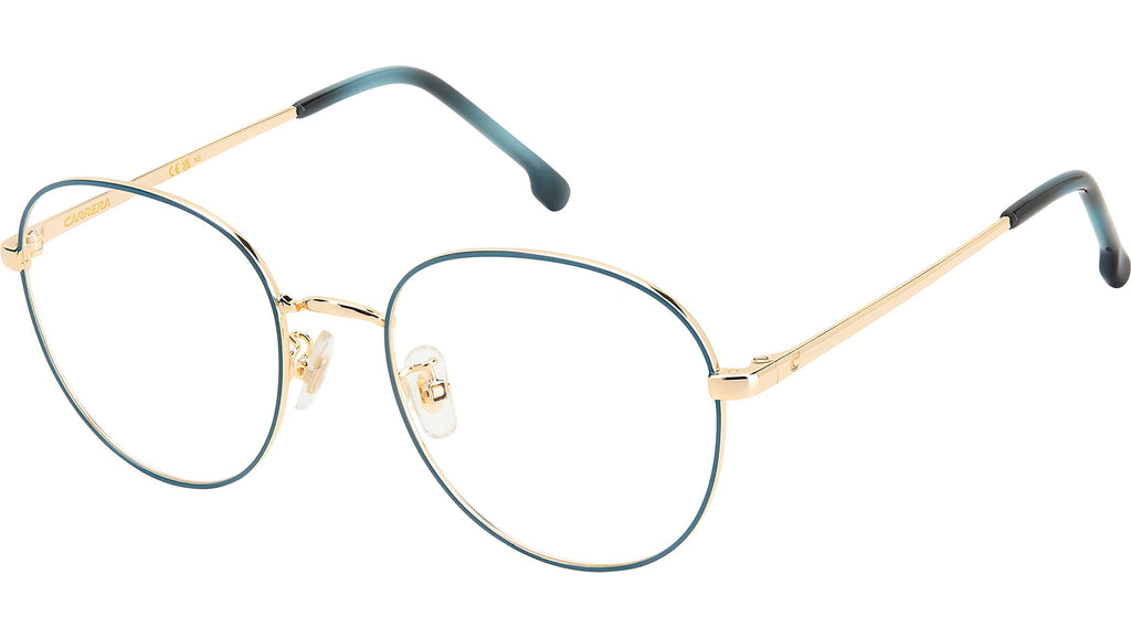 Occhiali da vista Carrera 3012 5F6 donna con montatura pantos in metallo alzavola oro e lenti demo. Nascono dalla maestria tecnica Carrera un occhiale da vista per donna. Le lenti rotonde sono sostenute da un profilo etereo in acciaio inossidabile, disponibile anche in versione colorata. Si agganciano con eleganza alle aste, impreziosite dal logo “C” laserato e dai terminali con colorazione a contrasto. I naselli regolabili consentono una calzata impeccabile, per un accessorio da indossare giorno dopo giorno. Linea: Signature. Codice modello: 107353. Codice colore: 5F6. Rivenditore autorizzato Carrera online. Gli occhiali vengono consegnati con custodia e accessori originali e sono coperti dalla garanzia ufficiale di 12 mesi del produttore.