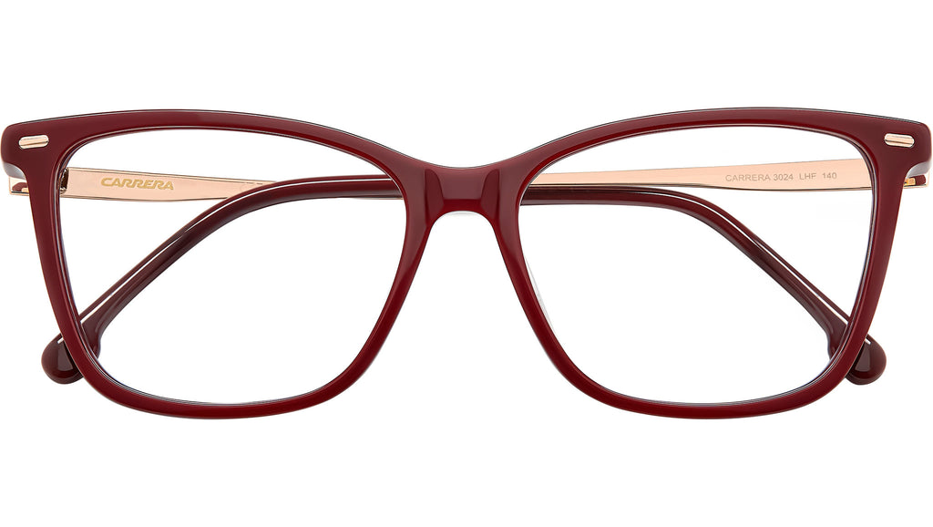 Occhiali da vista Carrera 3024 LHF donna con montatura rettangolare in acetato bordeaux e lenti demo. Per la donna che ama le linee pure, un occhiale da vista Carrera sono la scelta giusta da fare. Sono realizzati con una squisita combinazione di materiali: acetato per il frontale e metallo per le aste con terminali in coordinato. Carrera non rinuncia ad esprimere la sua personalità distintiva e aggiunge il rivetto metallico che correda il frontale oltre alla piccola “C” laserata sulle aste. Linea: Flag. Codice modello: 107586. Codice colore: LHF. Rivenditore autorizzato Carrera online. Gli occhiali vengono consegnati con custodia e accessori originali e sono coperti dalla garanzia ufficiale di 12 mesi del produttore.