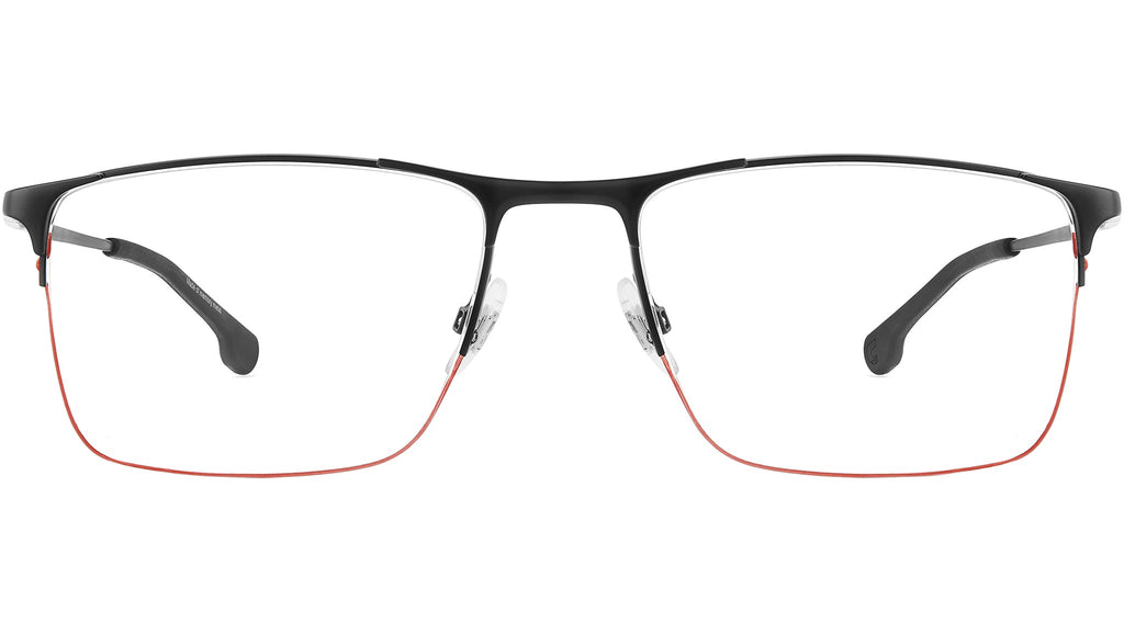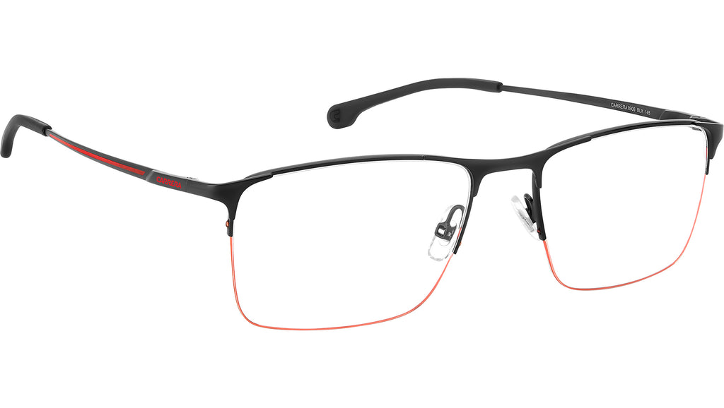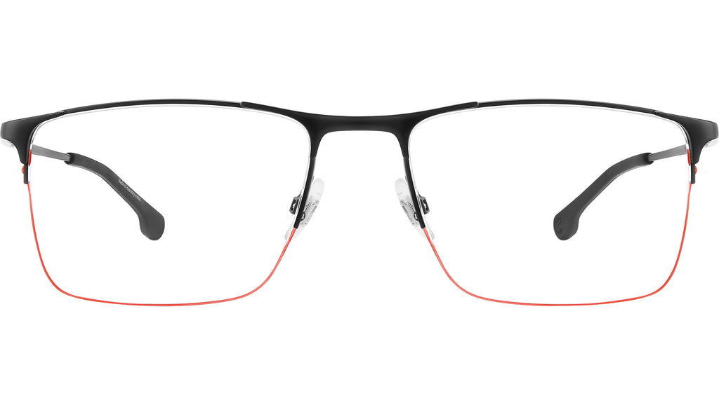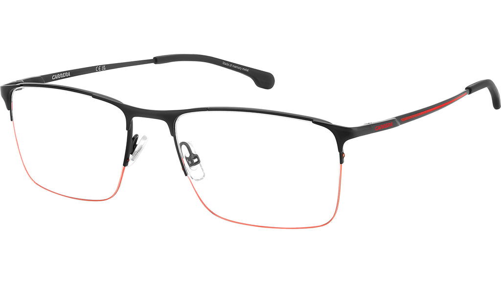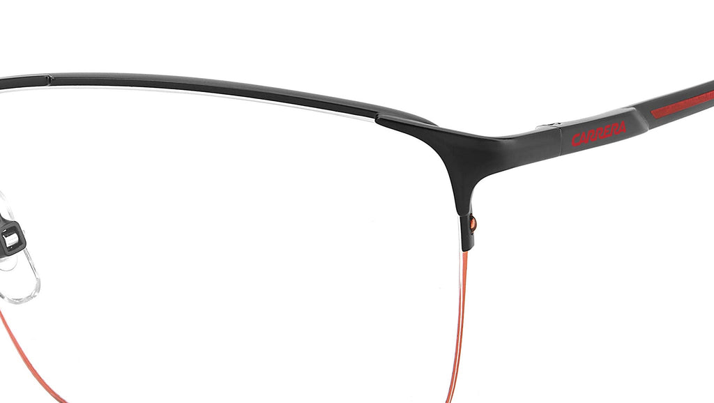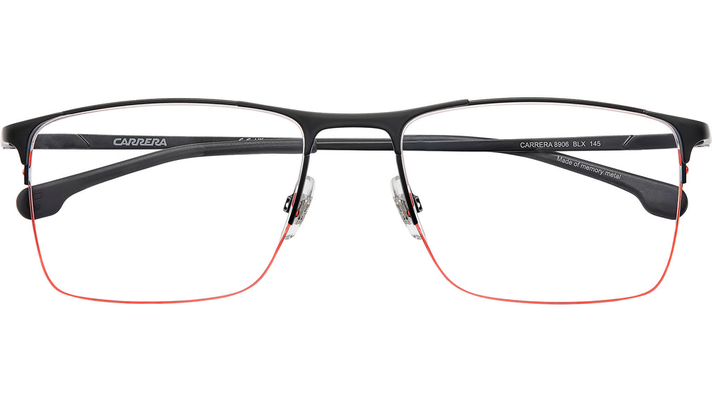 Occhiali da vista Carrera 8906 BLX uomo con montatura rettangolare in metallo nero opaco rosso e lenti demo. La coolness Carrera traspare anche nei modelli più tecnici e pratici, come un occhiale da vista dalla silhouette rettangolare. Le lenti sono sostenute da una montatura in acciaio inossidabile e da un sottile filo di nylor, anche in versione bi-color. Il ponte e le aste sono in Memory Metal, un’innovativa lega metallica che torna alla sua forma di partenza anche quando viene piegata. Disponibile in due calibri. Linea: Sport. Codice modello: 108128. Codice colore: BLX. Rivenditore autorizzato Carrera online. Gli occhiali vengono consegnati con custodia e accessori originali e sono coperti dalla garanzia ufficiale di 12 mesi del produttore.