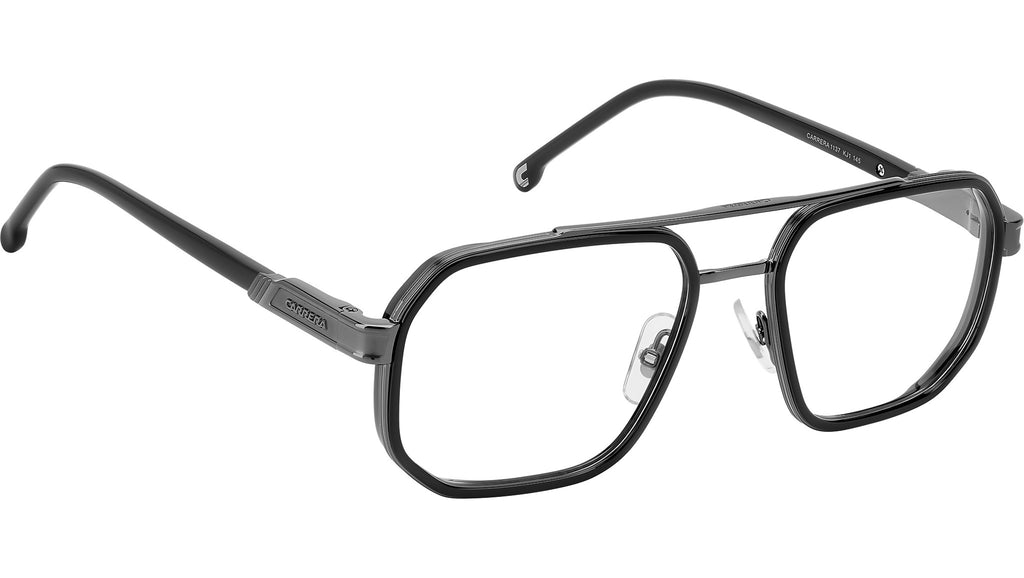 Occhiali da vista Carrera 1137 KJ1 uomo con montatura rettangolare in metallo rutenio scuro e lenti demo. Occhiali da vista dalla montatura sapientemente costruita, pregna di elementi celebrativi Carrera. Si fanno notare grazie al frontale lavorato: struttura in metallo con rivestimento iniettato e doppio ponte tipico Carrera. Il logo esteso è inciso sul lato superiore del frontale e in rilievo sulle aste in metallo. Un modello da indossare con disinvoltura perché leggero sul volto e corredato da naselli regolabili, terminali lunghi in acetato, cerniere flessibili. Linea: Flag. Codice modello: 108183. Codice colore: KJ1. Rivenditore autorizzato Carrera online. Gli occhiali vengono consegnati con custodia e accessori originali e sono coperti dalla garanzia ufficiale di 12 mesi del produttore.