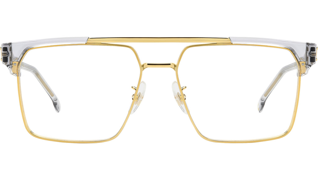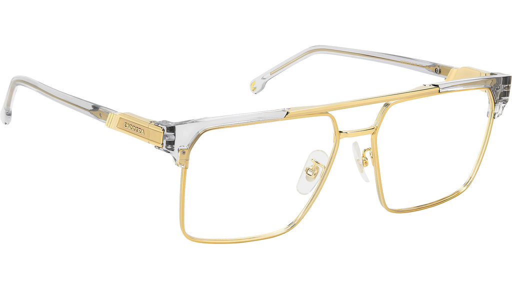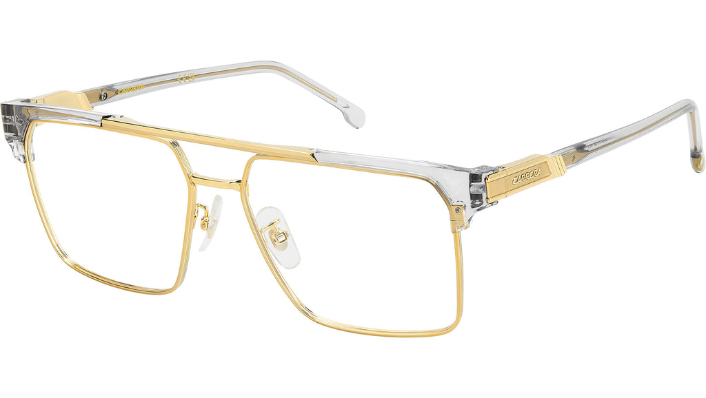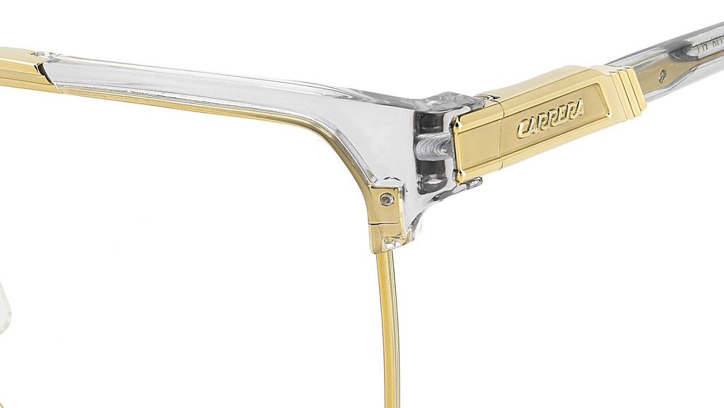 Occhiali da vista Carrera 1140 2F7 uomo con montatura rettangolare in metallo oro grigio e lenti demo. Con il loro carattere anticonformista, un occhiale da vista Carrera non passano inosservati. A fare la differenza è la combinazione di forme e materiali. Il frontale è in acciaio inossidabile, sovrastato dal doppio ponte con inserti in poliammide. Le aste sono determinanti, con logo scolpito e terminali in acetato, in tinta unita oppure trasparenti con anima a vista. Fit impeccabile grazie a naselli regolabili e cerniere flessibili. Linea: Flag. Codice modello: 108929. Codice colore: 2F7. Rivenditore autorizzato Carrera online. Gli occhiali vengono consegnati con custodia e accessori originali e sono coperti dalla garanzia ufficiale di 12 mesi del produttore.