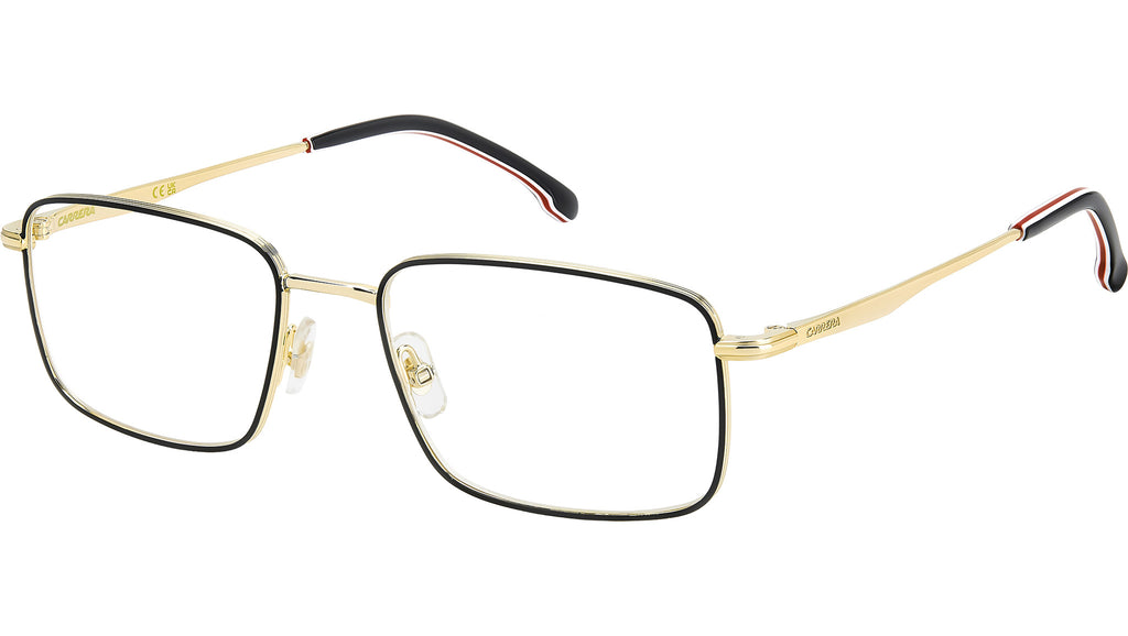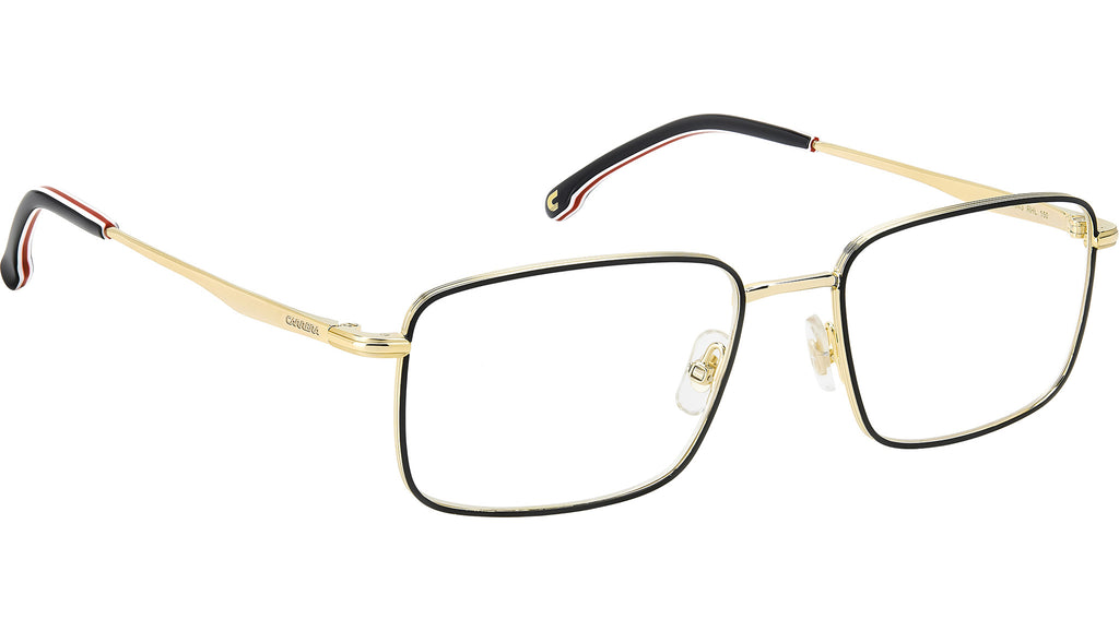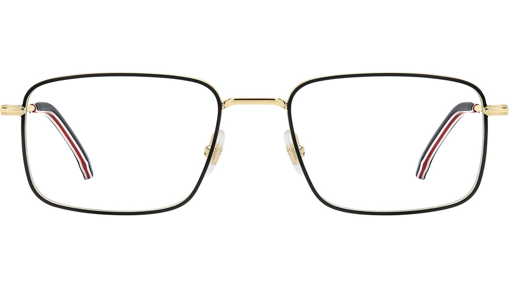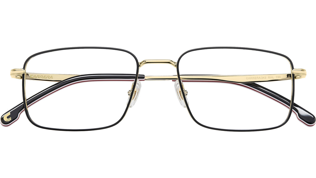 Occhiali da vista Carrera 343 RHL uomo con montatura rettangolare in metallo oro nero e lenti demo. Occhiali da vista Carrera emblema dello stile timeless, perfetti su ogni outfit e oltre le mode passeggere. È il potere della montatura in metallo con frontale rettangolare: un evergreen rassicurante, impreziosito dall’incisione sul profilo laterale a evocare la flag Carrera. Per un twist inaspettato, è proposto anche in versione smaltata. Le aste a pinna sono firmate dal logo laserato e corredate da terminali in acetato, anche in versione multistrato. Linea: Signature. Codice modello: 108977. Codice colore: RHL. Rivenditore autorizzato Carrera online. Gli occhiali vengono consegnati con custodia e accessori originali e sono coperti dalla garanzia ufficiale di 12 mesi del produttore.