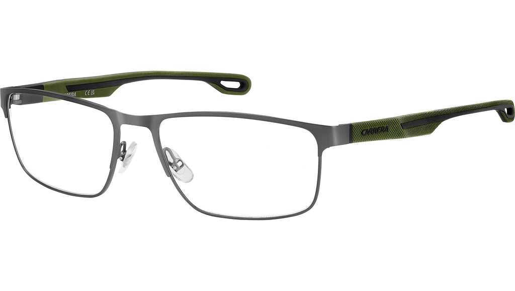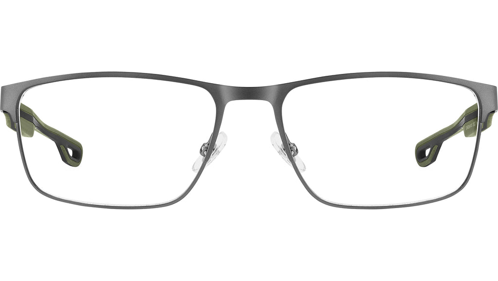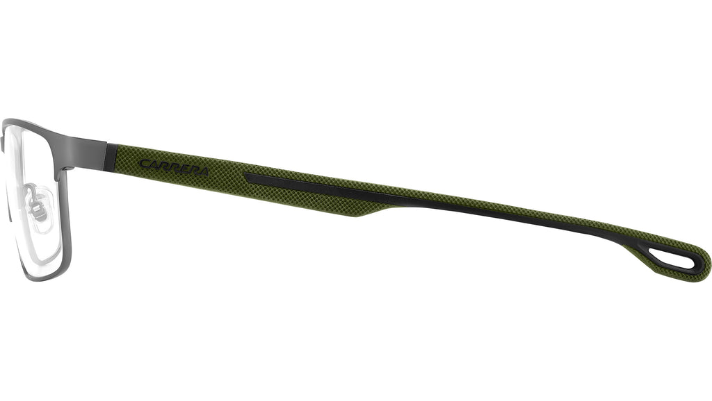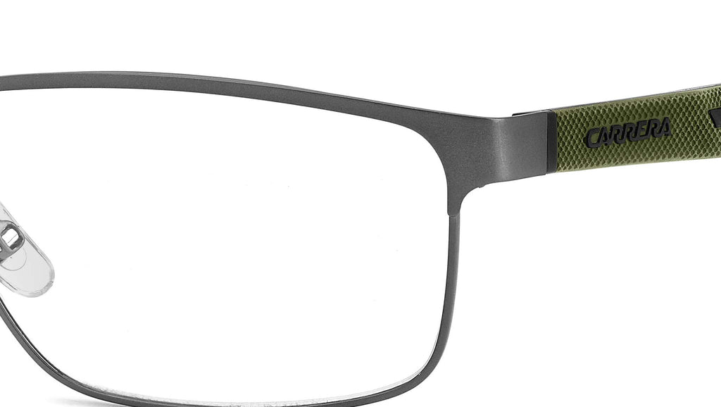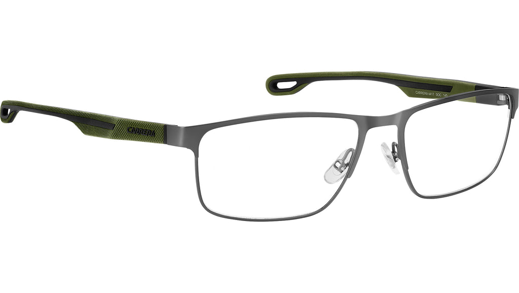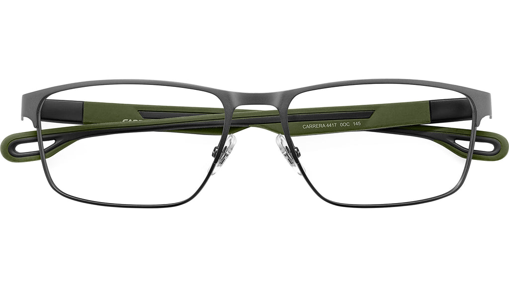 Occhiali da vista Carrera 4417 0OC uomo con montatura rettangolare in metallo verde rutenio scuro opaco e lenti demo. La performance sportiva è l’ispirazione dietro un occhiale da vista Carrera. Il modello ha tutto ciò che serve per garantire un look ineccepibile: frontale sobrio in acciaio inossidabile, naselli regolabili e cerniere flessibili. Il tocco da maestro di Carrera sono le aste in due colori bi-iniettati, con forme decise e inserti gommati a mimare la flag Carrera. Non sfuggono i fori nei terminali, dettaglio dedicato agli estimatori dello stile active. Linea: Sport. Codice modello: 108979. Codice colore: 0OC. Rivenditore autorizzato Carrera online. Gli occhiali vengono consegnati con custodia e accessori originali e sono coperti dalla garanzia ufficiale di 12 mesi del produttore.