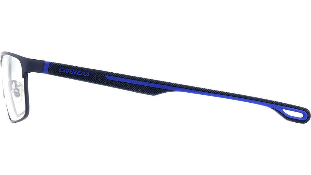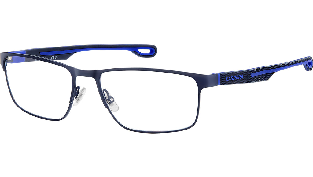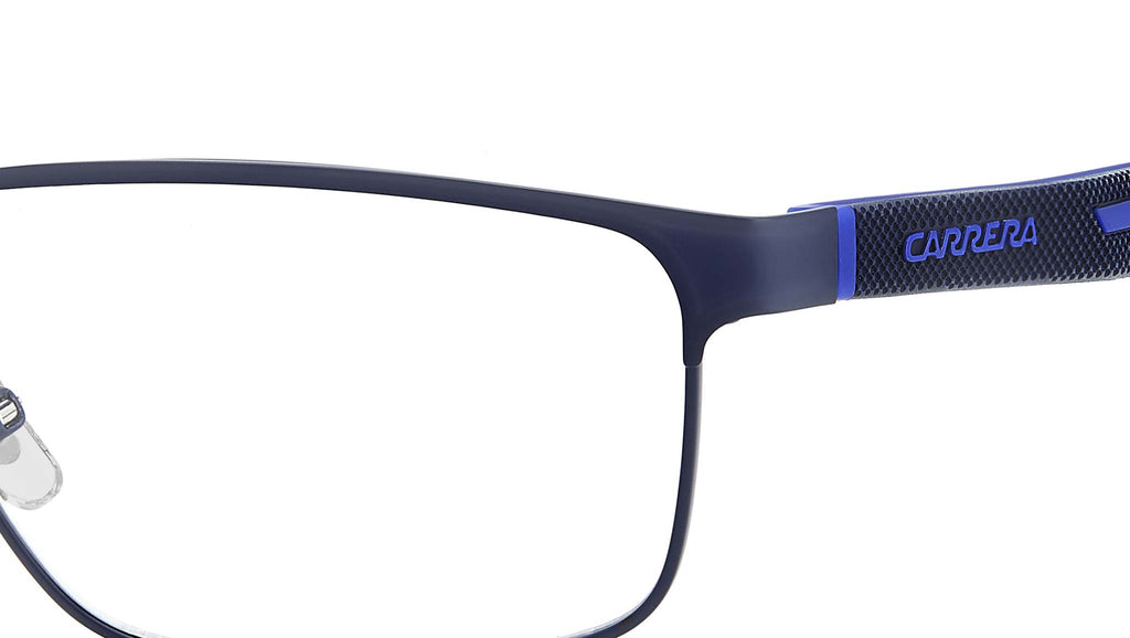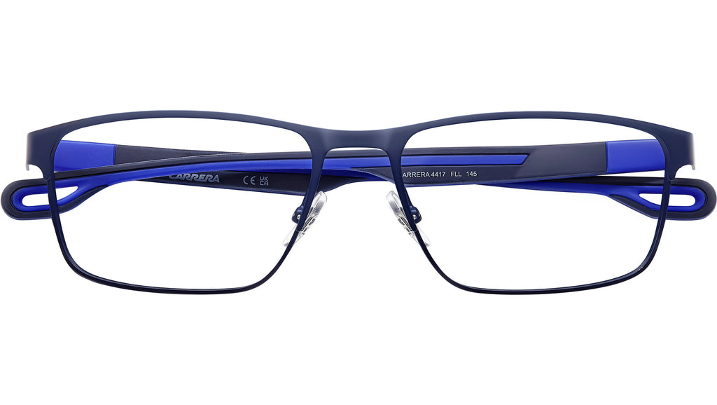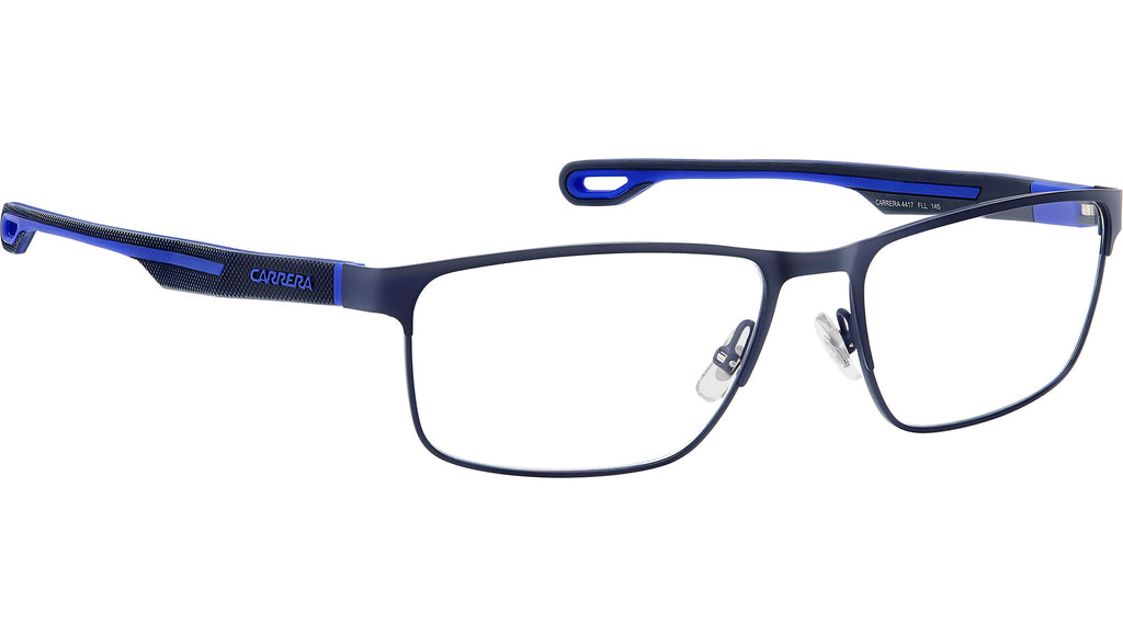 Occhiali da vista Carrera 4417 FLL uomo con montatura rettangolare in metallo blu opaco e lenti demo. La performance sportiva è l’ispirazione dietro un occhiale da vista Carrera. Il modello ha tutto ciò che serve per garantire un look ineccepibile: frontale sobrio in acciaio inossidabile, naselli regolabili e cerniere flessibili. Il tocco da maestro di Carrera sono le aste in due colori bi-iniettati, con forme decise e inserti gommati a mimare la flag Carrera. Non sfuggono i fori nei terminali, dettaglio dedicato agli estimatori dello stile active. Linea: Sport. Codice modello: 108979. Codice colore: FLL. Rivenditore autorizzato Carrera online. Gli occhiali vengono consegnati con custodia e accessori originali e sono coperti dalla garanzia ufficiale di 12 mesi del produttore.