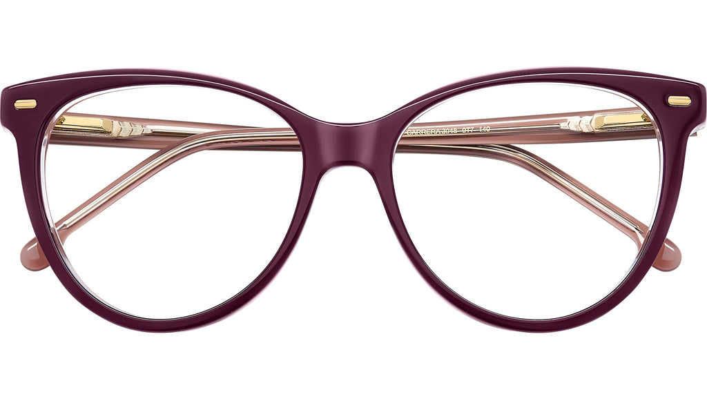 Occhiali da vista Carrera 3048 0T7 donna con montatura cat eye in acetato prugna e lenti demo. Gli occhiali da vista Carrera da donna sono la chiave per un look timeless che non stanca mai. Realizzati in acetato, hanno linee delicate e femminili accese da dettagli metallici quali i rivetti sul frontale e la “C” sulle aste. Le cerniere sono flessibili, per un confort ottimale. Disponibili nelle nuance classiche oppure più creative, come l’havana colorata o l’effetto nude, anche con aste multistrato o con anima a vista. Linea: Signature. Codice modello: 109020. Codice colore: 0T7. Rivenditore autorizzato Carrera online. Gli occhiali vengono consegnati con custodia e accessori originali e sono coperti dalla garanzia ufficiale di 12 mesi del produttore.