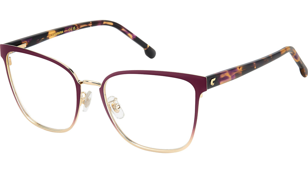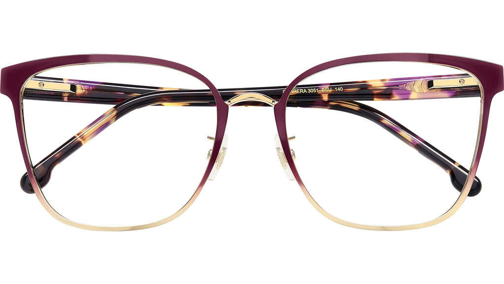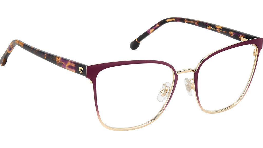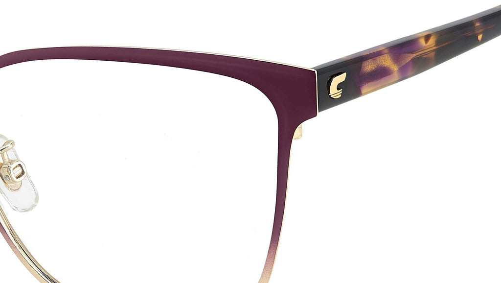 Occhiali da vista Carrera 3051 BSU donna con montatura rettangolare in metallo viola oro e lenti demo. Carrera arricchisce la collezione eyewear donna con un occhiale da vista, perfetto connubio tra bellezza senza tempo e praticità quotidiana. Da notare i dettagli: il frontale in acciaio inossidabile è sfumato in due colori, mentre le aste sono in acetato, impreziosite dalla “C” in metallo posta in rilievo. Il modello arriva nelle varianti colore ideali da indossare tutti i giorni: le tinte neutre, il nude, l’havana colorata. Linea: Flag. Codice modello: 109022. Codice colore: BSU. Rivenditore autorizzato Carrera online. Gli occhiali vengono consegnati con custodia e accessori originali e sono coperti dalla garanzia ufficiale di 12 mesi del produttore.