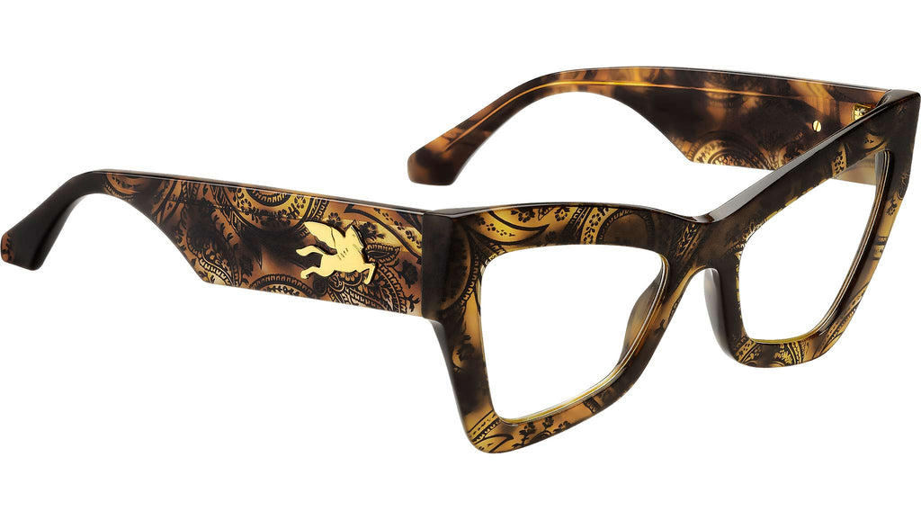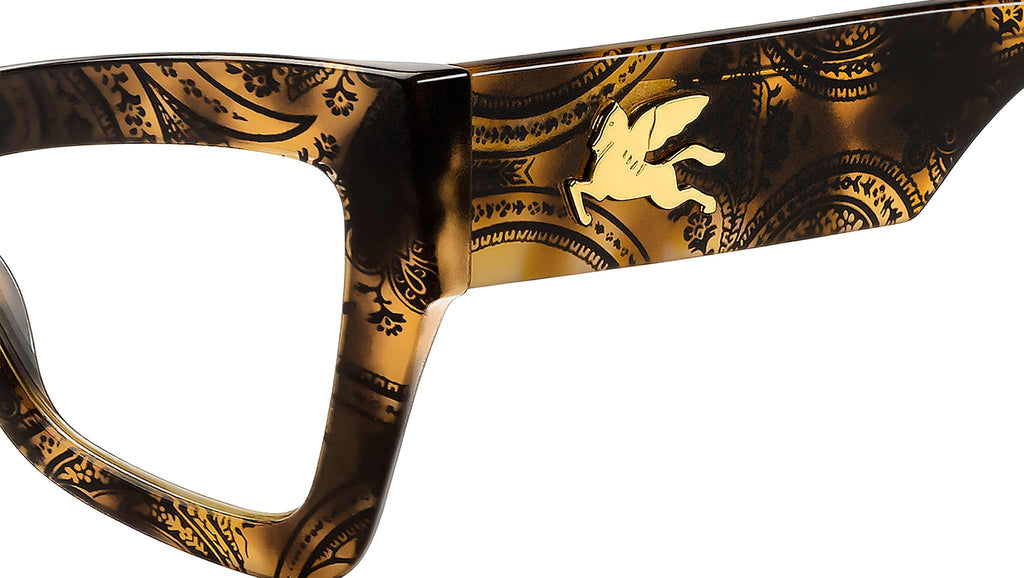 Occhiali da vista Etro 0069 086 donna con montatura butterfly in acetato avana e lenti demo. Una vera dichiarazione di stile, questi occhiali da vista si integrano perfettamente nelle atmosfere dell'ultima sfilata ETRO. Caratterizzate da una forma geometrica decisa, le montature sono realizzate in acetato di alta qualità, disponibile in nero e nel distintivo motivo Paisley. La costruzione delle aste è un dettaglio innovativo e inaspettato, combinando un leggero effetto fresato con una decorazione preziosa in metallo che raffigura il mitico Pegaso. I terminali iconici completano il design di questo eyewear. Linea: Manifesto. Codice modello: 109135. Codice colore: 086. Rivenditore autorizzato Etro online. Gli occhiali vengono consegnati con custodia e accessori originali e sono coperti dalla garanzia ufficiale di 12 mesi del produttore.