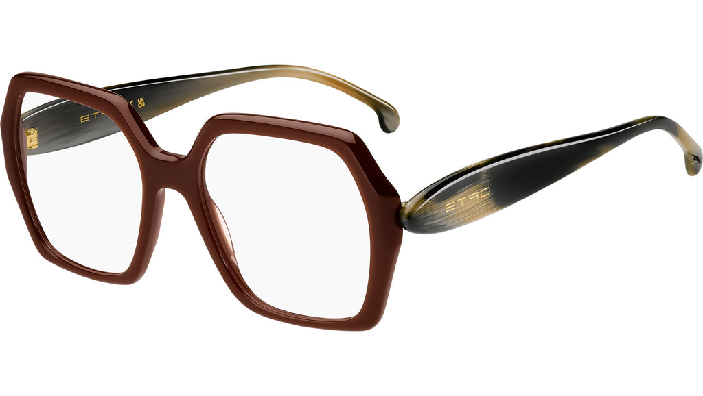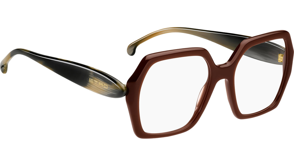 Occhiali da vista Etro 0088 09Q donna con montatura squadrata in acetato marrone e lenti demo. Emblema dello spirito ETRO, la collezione eyewear 'Etropaisley' celebra il motivo inconfondibile del brand in tutte le sue forme e varianti cromatiche. Questi occhiali da vista richiamano un'opera d'arte, con una montatura geometrica dalle curve morbide e aste ondulate. L'accento è posto sulle proporzioni delicate e sulle combinazioni audaci di colori, incluse irresistibili varianti bicolore. Ogni modello è arricchito dal logo ETRO e dai terminali distintivi, che riprendono la geometria arrotondata del motivo Paisley. Linea: Etromania. Codice modello: 109290. Codice colore: 09Q. Rivenditore autorizzato Etro online. Gli occhiali vengono consegnati con custodia e accessori originali e sono coperti dalla garanzia ufficiale di 12 mesi del produttore.
