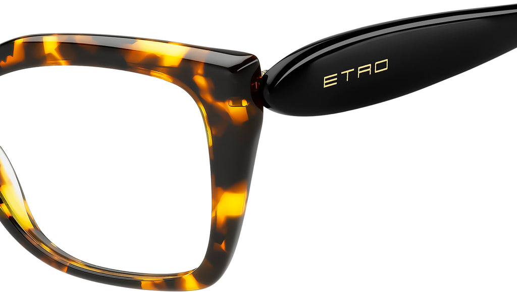 Occhiali da vista Etro 0087 EPZ donna con montatura rettangolare in acetato giallo avana e lenti demo. Emblema dello spirito ETRO, la collezione eyewear 'Etropaisley' celebra il motivo inconfondibile del brand in tutte le sue forme e varianti cromatiche. Questi occhiali da vista richiamano un'opera d'arte, con una montatura geometrica dalle curve morbide e aste ondulate. L'accento è posto sulle proporzioni delicate e sulle combinazioni audaci di colori, incluse irresistibili varianti bicolore. Ogni modello è arricchito dal logo ETRO e dai terminali distintivi, che riprendono la geometria arrotondata del motivo Paisley. Linea: Etromania. Codice modello: 109291. Codice colore: EPZ. Rivenditore autorizzato Etro online. Gli occhiali vengono consegnati con custodia e accessori originali e sono coperti dalla garanzia ufficiale di 12 mesi del produttore.