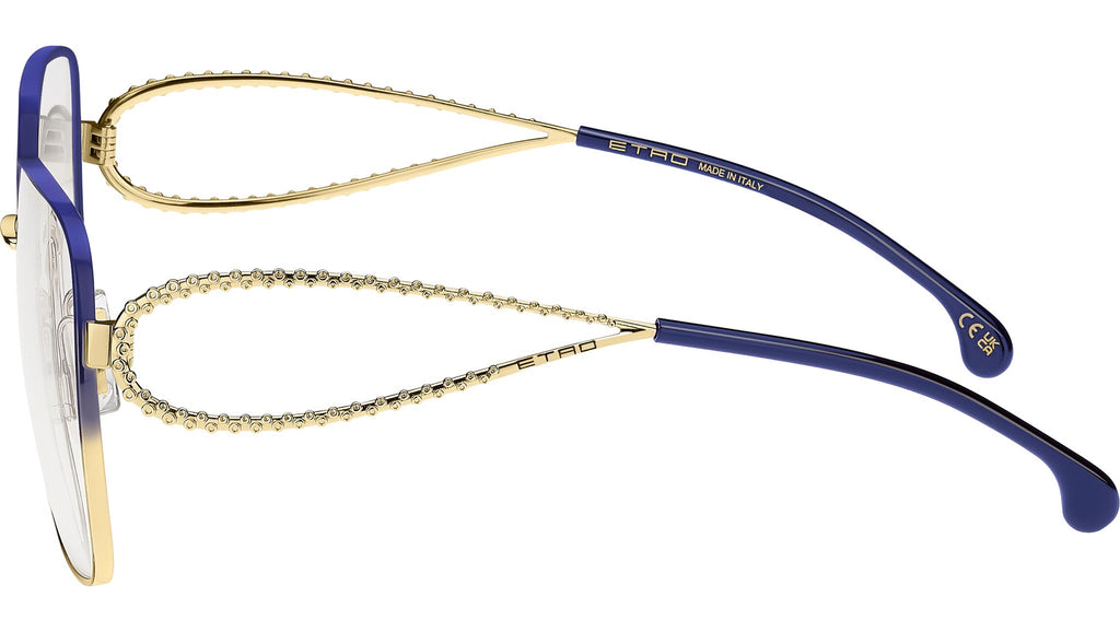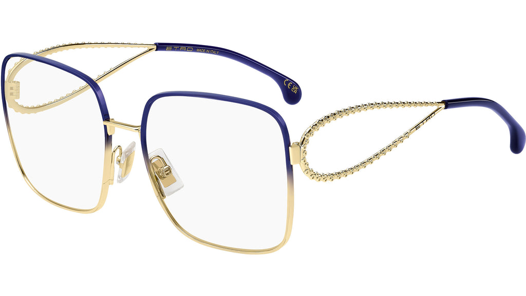 Occhiali da vista Etro 0073 S9E donna con montatura squadrata in metallo oro viola e lenti demo. Un omaggio alla libertà creativa e all'arte, gli occhiali da vista 'Etropaisley' di ETRO traggono ispirazione dalla collezione di gioielli del brand. La silhouette in metallo è arricchita da aste scultoree, lavorate con una tecnica innovativa di incisione 3D che richiama il celebre motivo Paisley, garantendo al contempo leggerezza e comfort quotidiano. I terminali in acetato e i dettagli floreali, insieme al logo ETRO, completano questo design eccezionale, disponibile in una selezione di colori eleganti. Linea: Etromania. Codice modello: 109302. Codice colore: S9E. Rivenditore autorizzato Etro online. Gli occhiali vengono consegnati con custodia e accessori originali e sono coperti dalla garanzia ufficiale di 12 mesi del produttore.