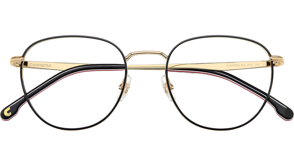 Occhiali da vista Carrera 354 RHL uomo con montatura pantos in metallo oro nero e lenti demo. Gli occhiali da vista di forma pantos sono una certezza, e questo modello Carrera non fa eccezione. Leggerezza e classici elementi Carrera sono le caratteristiche principali. A partire dal frontale in acciaio inossidabile con naselli regolabili. Le aste sono un tributo all’heritage Carrera: direttamente dagli archivi del brand, con aggancio al frontale scolpito nella forma della flag. I terminali in acetato sono disponibili in tinta unita, trasparenti oppure multistrato. Linea: Signature. Codice modello: 109367. Codice colore: RHL. Rivenditore autorizzato Carrera online. Gli occhiali vengono consegnati con custodia e accessori originali e sono coperti dalla garanzia ufficiale di 12 mesi del produttore.