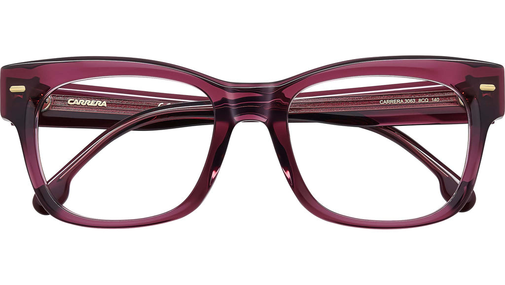 Occhiali da vista Carrera 3063 8CQ donna con montatura rettangolare in acetato ciliegia e lenti demo. Design intramontabile ispirato ai grandi classici, e un pizzico di unicità tipica Carrera per un occhiale da vista donna. In acetato, giocano con volumi e proporzioni bold, comunque sempre leggeri sul volto. Arrivano in tinte neutre o stagionali, oppure nero e oro con anima a vista sul lato interno. Il feeling prezioso si deve agli ornamenti metallici, quali i rivetti cesellati e la “C” sulle aste - tanto discreta quanto riconoscibile. Linea: Signature. Codice modello: 109430. Codice colore: 8CQ. Rivenditore autorizzato Carrera online. Gli occhiali vengono consegnati con custodia e accessori originali e sono coperti dalla garanzia ufficiale di 12 mesi del produttore.