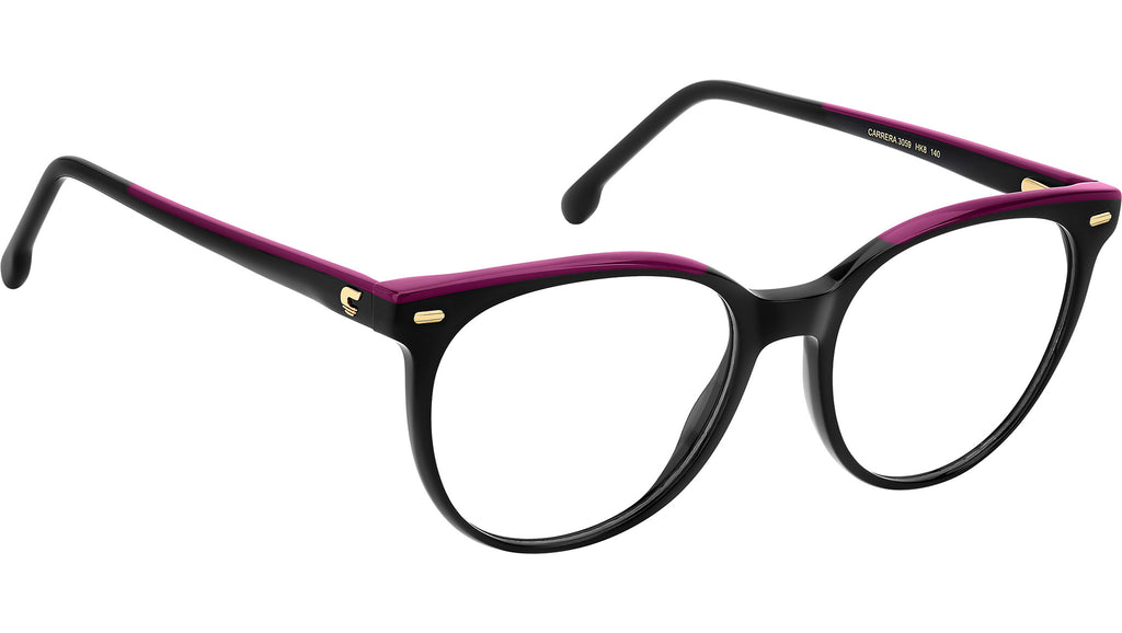 Occhiali da vista Carrera 3059 HK8 donna con montatura rettangolare in acetato nero viola e lenti demo. Gli occhiali da vista di forma pantos sono un classico, e Carrera li aggiorna in chiave contemporanea. Questo modello da donna è in acetato, impreziosito dai rivetti sul frontale. Sulle aste, la “C” in rilievo è discreta ma riconoscibile, un dettaglio tipico Carrera. Speciale il trattamento colore, anche trasparente o con inserto a contrasto sul profilo superiore. Le cerniere flessibili offrono una calzata sempre confortevole. Linea: Signature. Codice modello: 109439. Codice colore: HK8. Rivenditore autorizzato Carrera online. Gli occhiali vengono consegnati con custodia e accessori originali e sono coperti dalla garanzia ufficiale di 12 mesi del produttore.