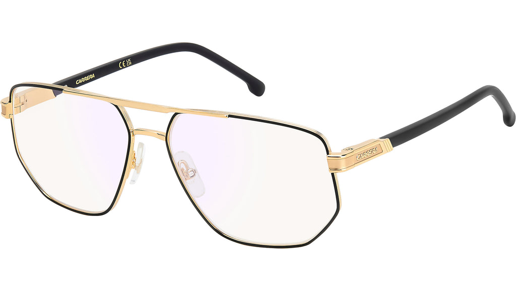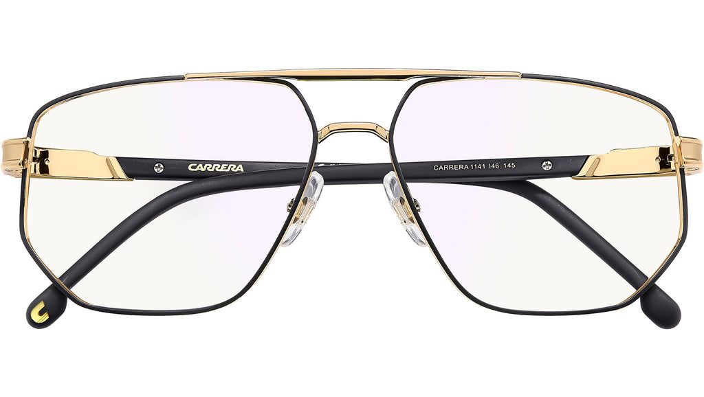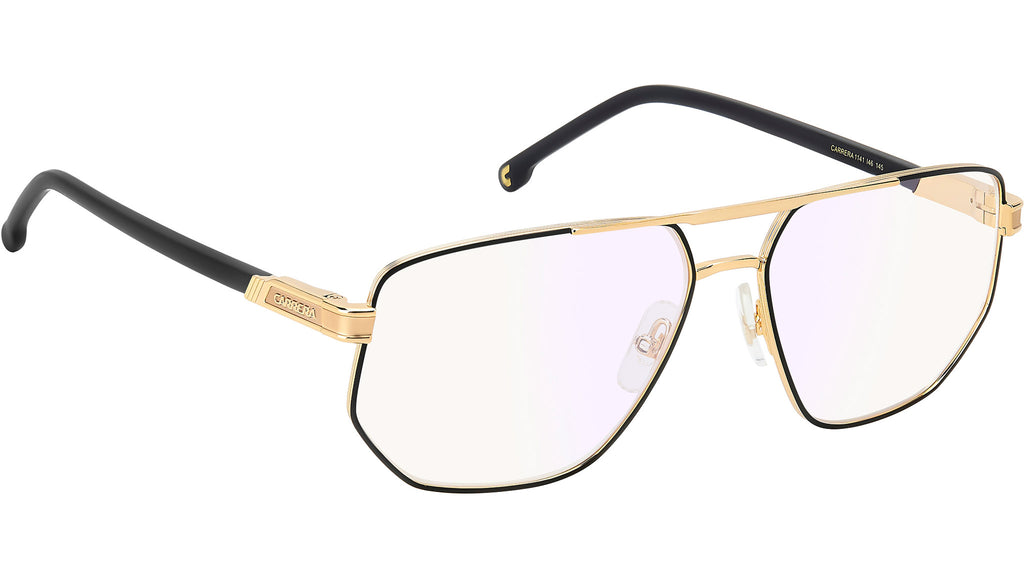 Occhiali da vista Carrera 1141 I46 uomo con montatura rettangolare in metallo nero opaco oro e lenti demo. Non c’è spazio per la banalità con un occhiale da vista Carrera. La forma navigator è un classico del brand, qui in acciaio inossidabile con profili sottili e doppio ponte, anche in versione smaltata. Le aste in metallo presentano il logo in rilievo e terminali lunghi in acetato, da scegliere in tinta unita oppure effetto marmo. Con naselli regolabili e cerniere flessibili, per il comfort di ciascuno. Linea: Flag. Codice modello: 109487. Codice colore: I46. Rivenditore autorizzato Carrera online. Gli occhiali vengono consegnati con custodia e accessori originali e sono coperti dalla garanzia ufficiale di 12 mesi del produttore.