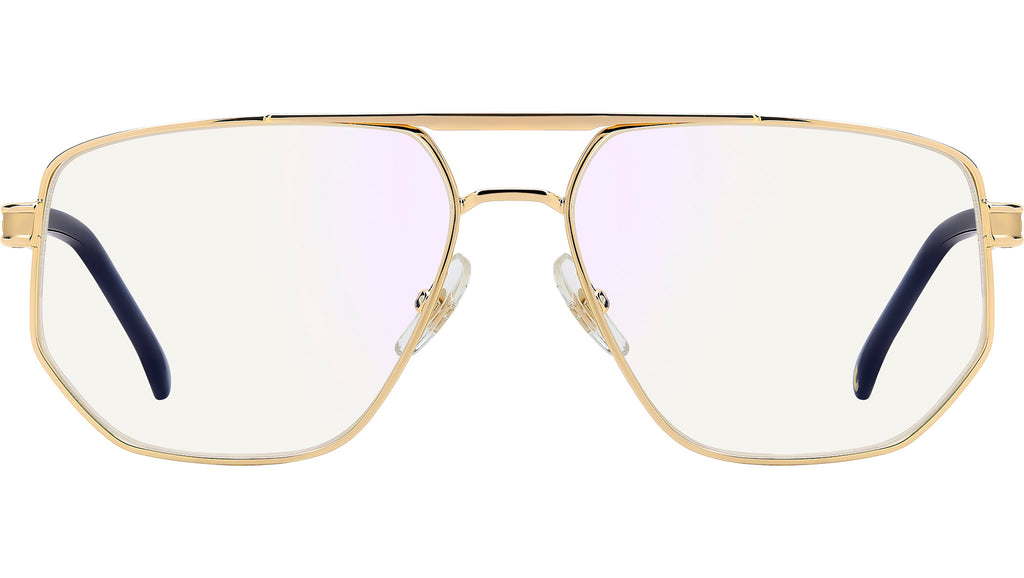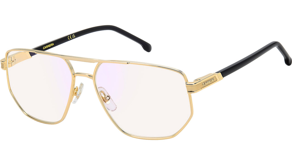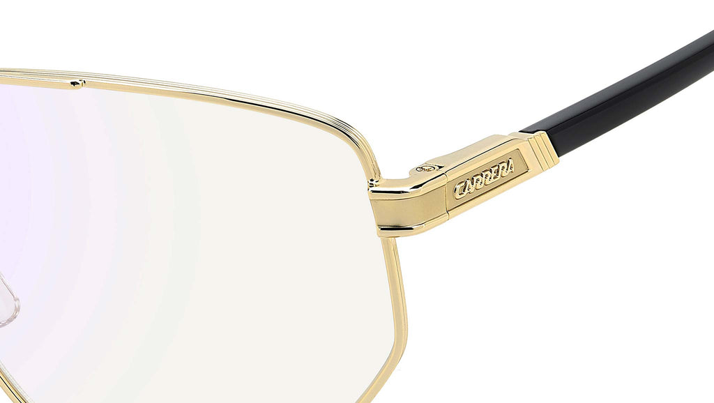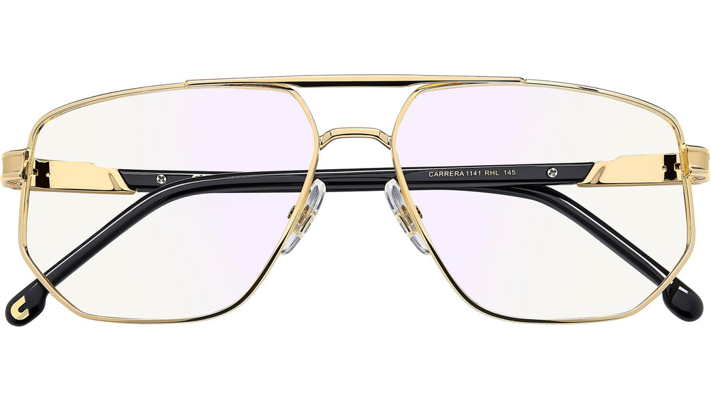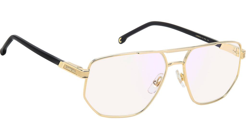 Occhiali da vista Carrera 1141 RHL uomo con montatura rettangolare in metallo oro nero e lenti demo. Non c’è spazio per la banalità con un occhiale da vista Carrera. La forma navigator è un classico del brand, qui in acciaio inossidabile con profili sottili e doppio ponte, anche in versione smaltata. Le aste in metallo presentano il logo in rilievo e terminali lunghi in acetato, da scegliere in tinta unita oppure effetto marmo. Con naselli regolabili e cerniere flessibili, per il comfort di ciascuno. Linea: Flag. Codice modello: 109487. Codice colore: RHL. Rivenditore autorizzato Carrera online. Gli occhiali vengono consegnati con custodia e accessori originali e sono coperti dalla garanzia ufficiale di 12 mesi del produttore.