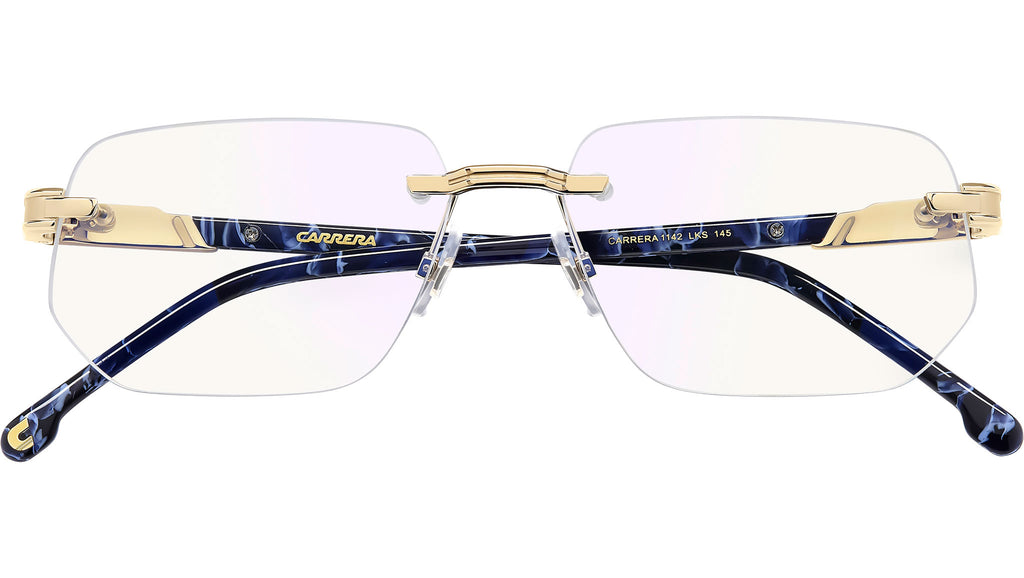 Occhiali da vista Carrera 1142 LKS uomo con montatura rettangolare in metallo oro blu e lenti demo. Occhiali da vista estremamente leggeri ma con la personalità bold di Carrera. Sul ponte in metallo è inciso il logo “Victory C”. Le aste scolpite sono tipiche Carrera, ancora più audaci nella versione con terminali marmorizzati. Le cerniere sono flessibili, mentre i naselli si regolano sul naso assecondando la fisionomia di ciascuno. Linea: Flag. Codice modello: 109488. Codice colore: LKS. Rivenditore autorizzato Carrera online. Gli occhiali vengono consegnati con custodia e accessori originali e sono coperti dalla garanzia ufficiale di 12 mesi del produttore.