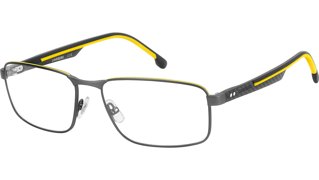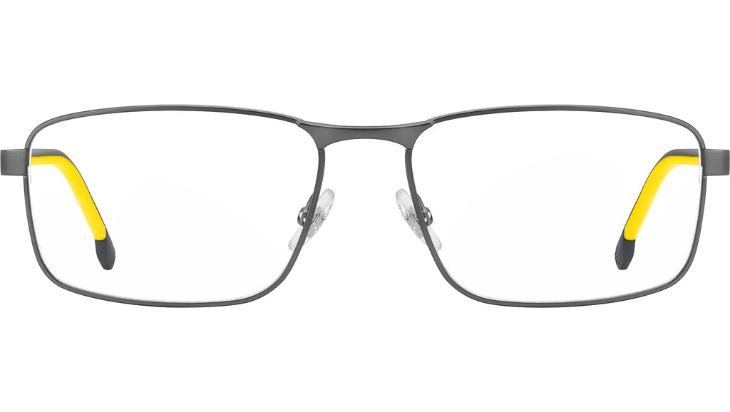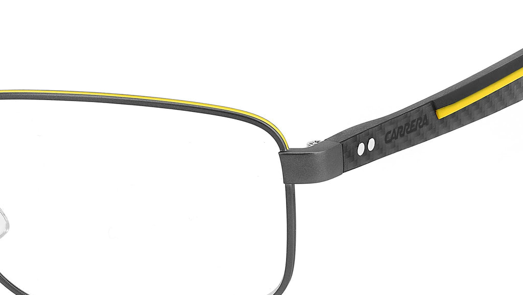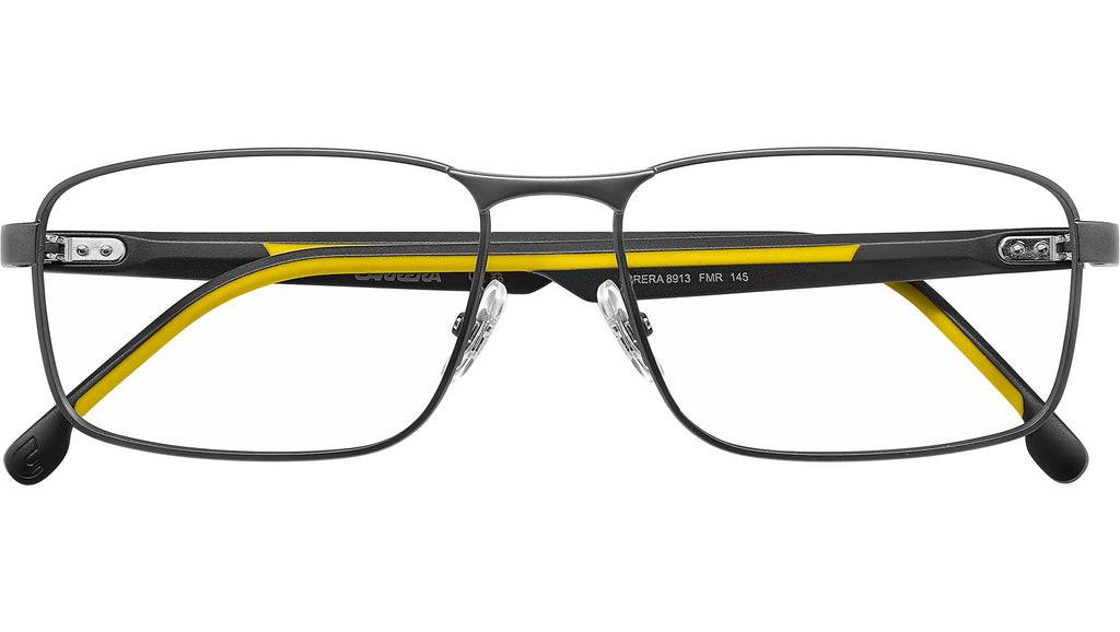 Occhiali da vista Carrera 8913 FMR uomo con montatura rettangolare in metallo giallo rutenio scuro opaco e lenti demo. Carrera sceglie la fibra di carbonio per un occhiale da vista di qualità premium. Applica questo materiale leggero e resistente alle aste silm con design texturizzato. Aumentano il comfort i terminali gommati, con colorazione a contrasto oppure tono su tono. Lo sguardo è fisso sul traguardo dei propri obbietti, vestito dal frontale rettangolare in leggero acciaio inossidabile con naselli regolabili. Per uno stile concreto, senza fronzoli né distrazioni. Linea: Sport. Codice modello: 109526. Codice colore: FMR. Rivenditore autorizzato Carrera online. Gli occhiali vengono consegnati con custodia e accessori originali e sono coperti dalla garanzia ufficiale di 12 mesi del produttore.